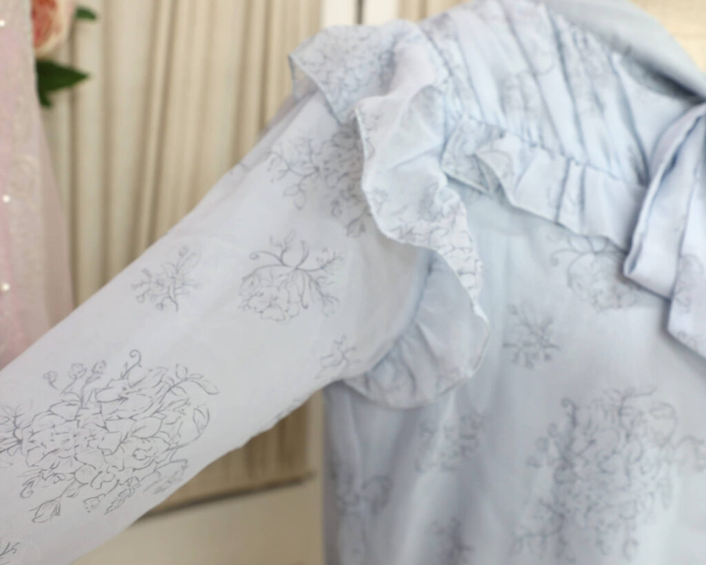 日常にもなじむような落ち着いた目立ちすぎない花柄のブルーグレーのカラーでご用意しました。