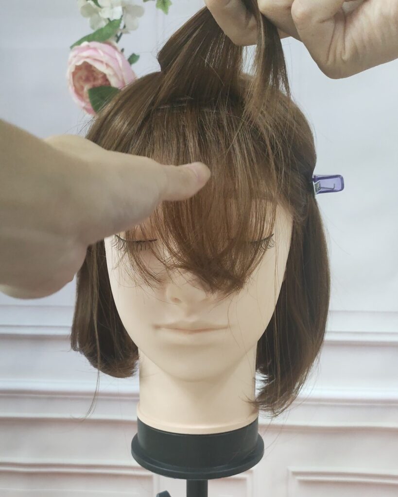 ステップ2、前髪を上下で二つに分ける