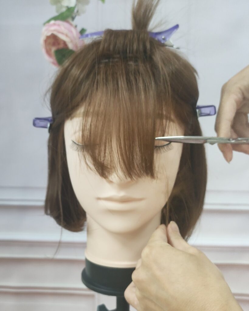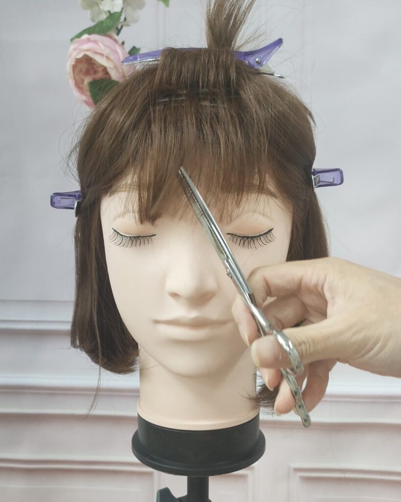 このようにウィッグを可愛く自然にかぶるためには、前髪のカットが必須となります。