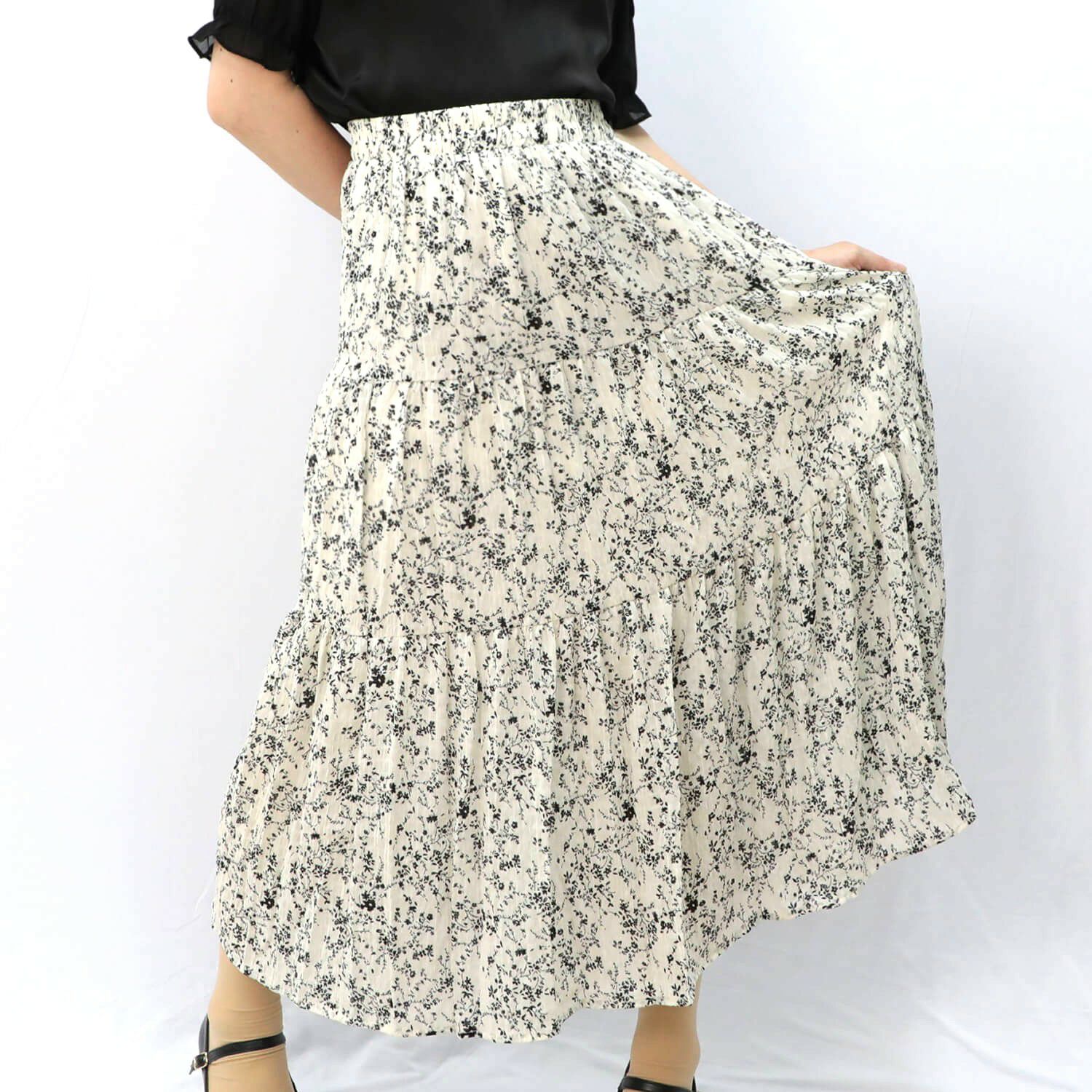 花柄パターンのロングスカート。