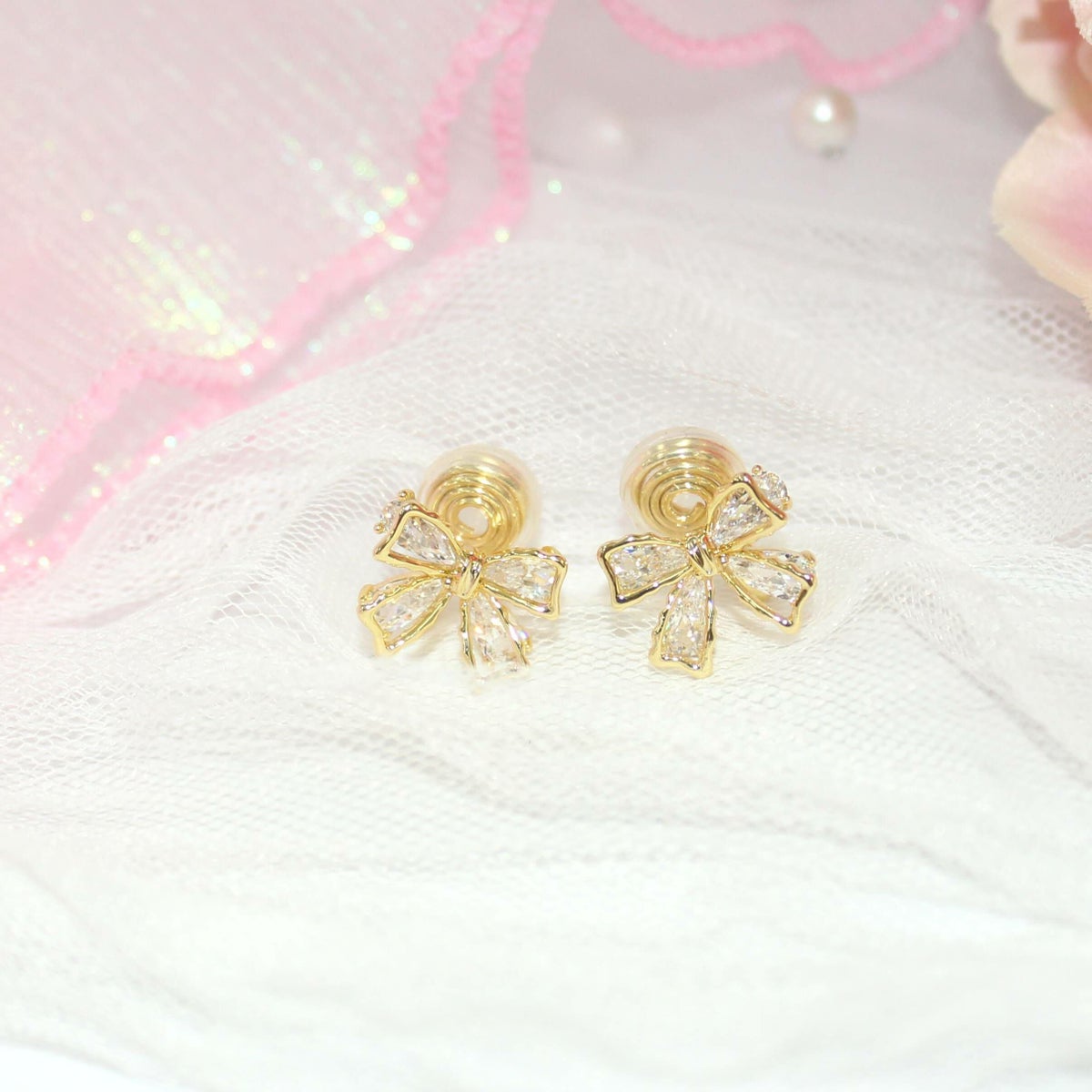 バタフライリボンイヤリング ゴールド