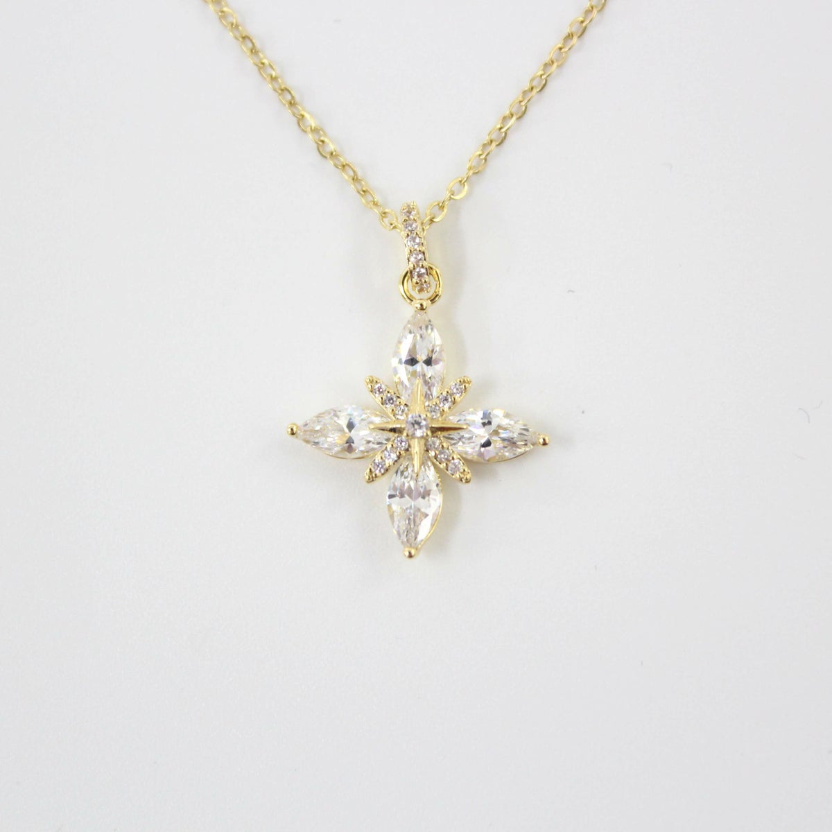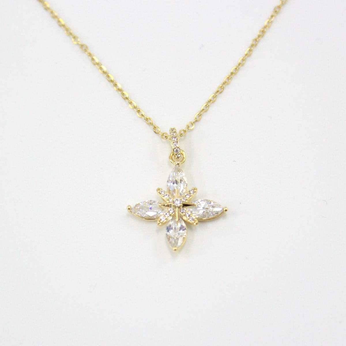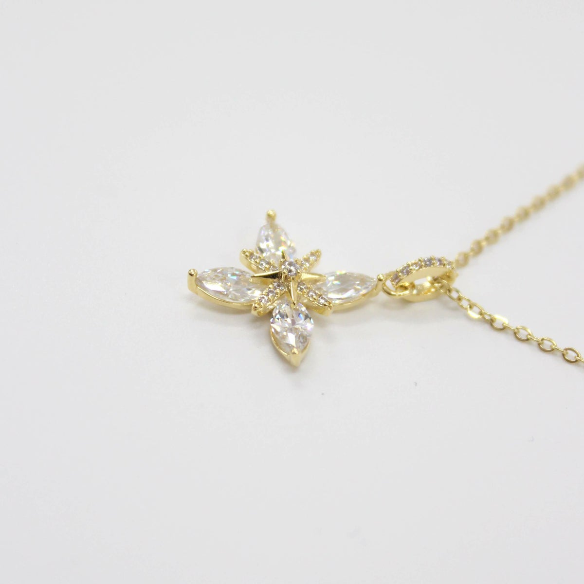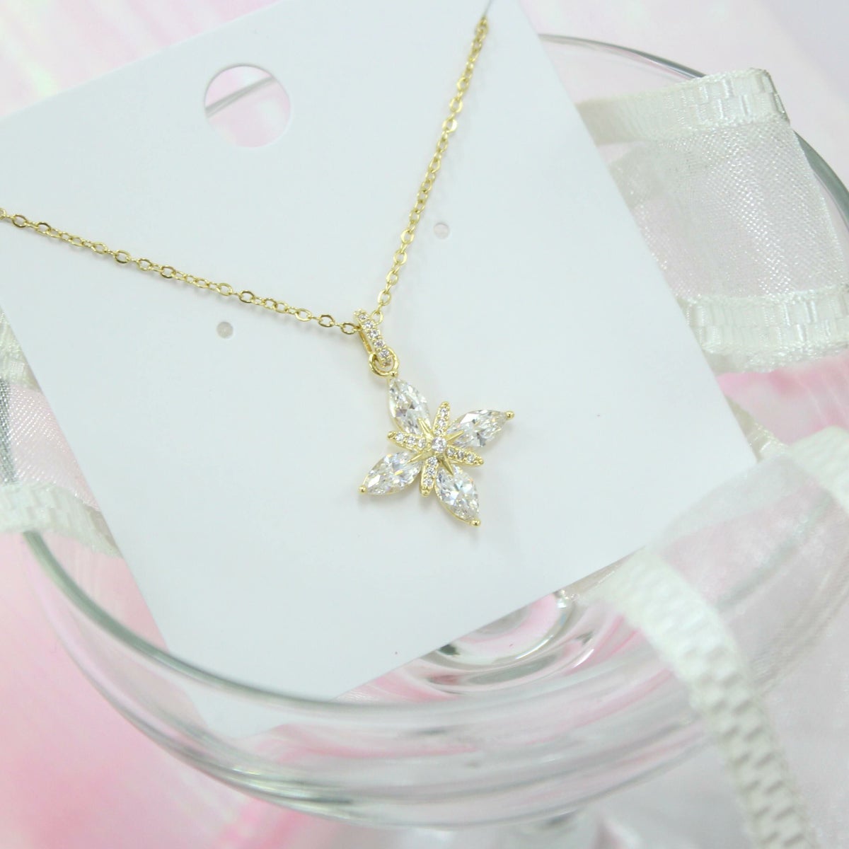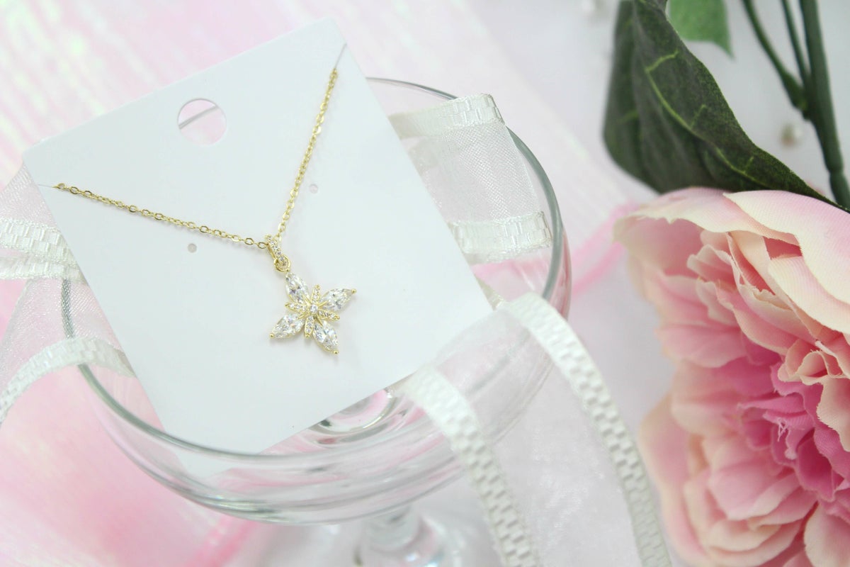 フラワービジューネックレス ゴールド