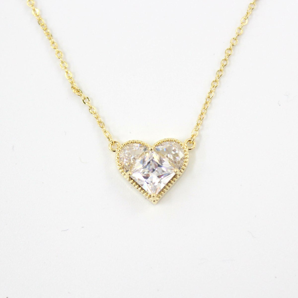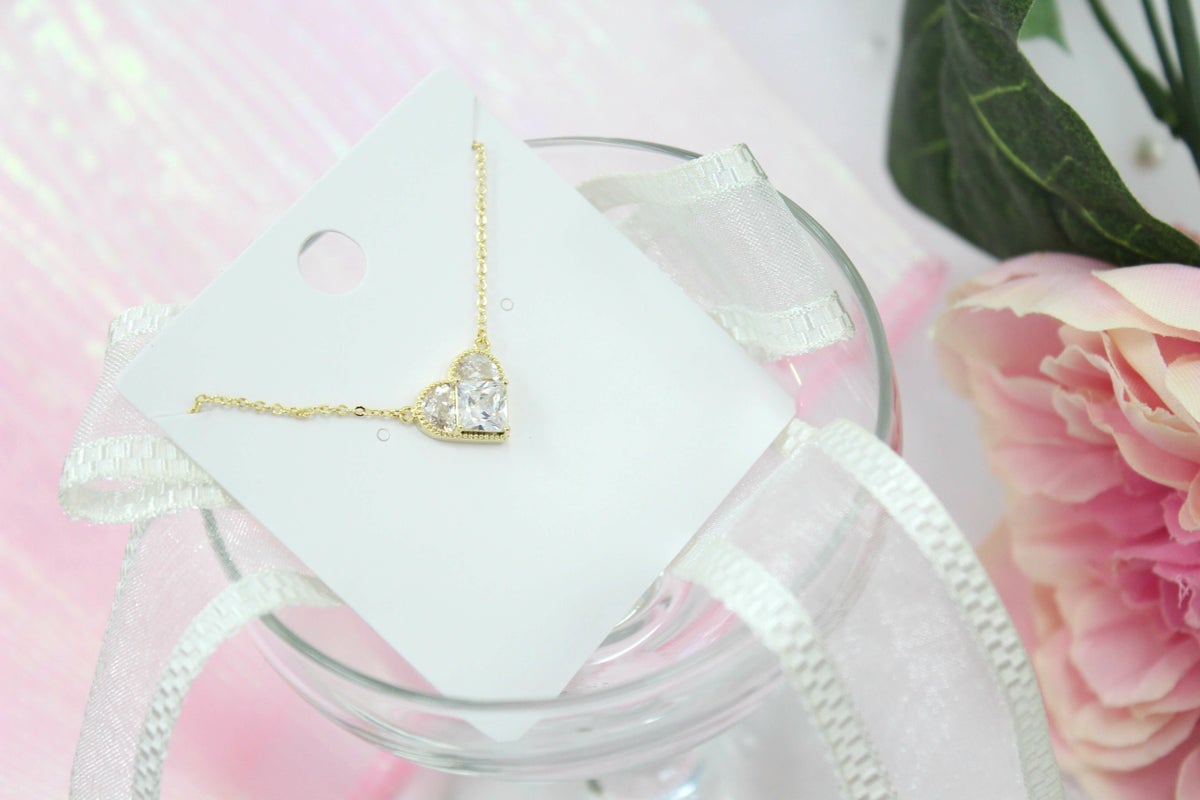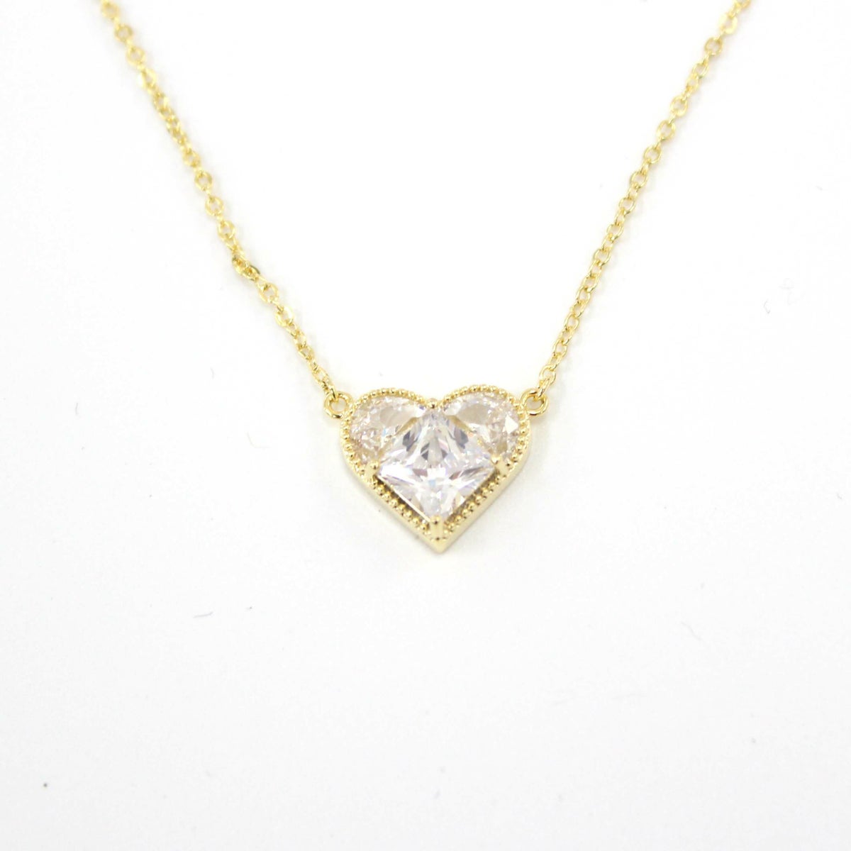 スクエアビジューハートネックレス ゴールド