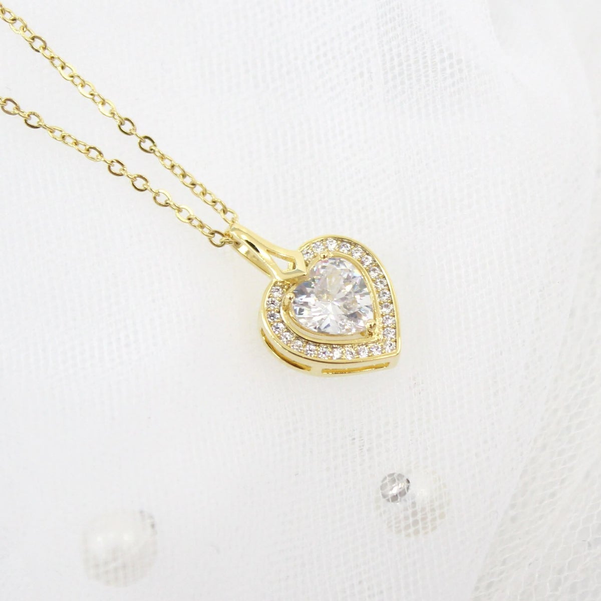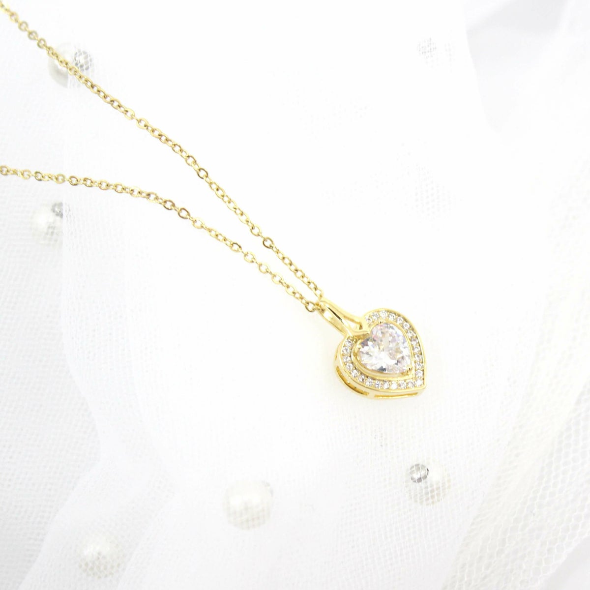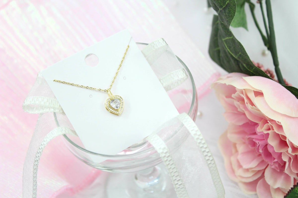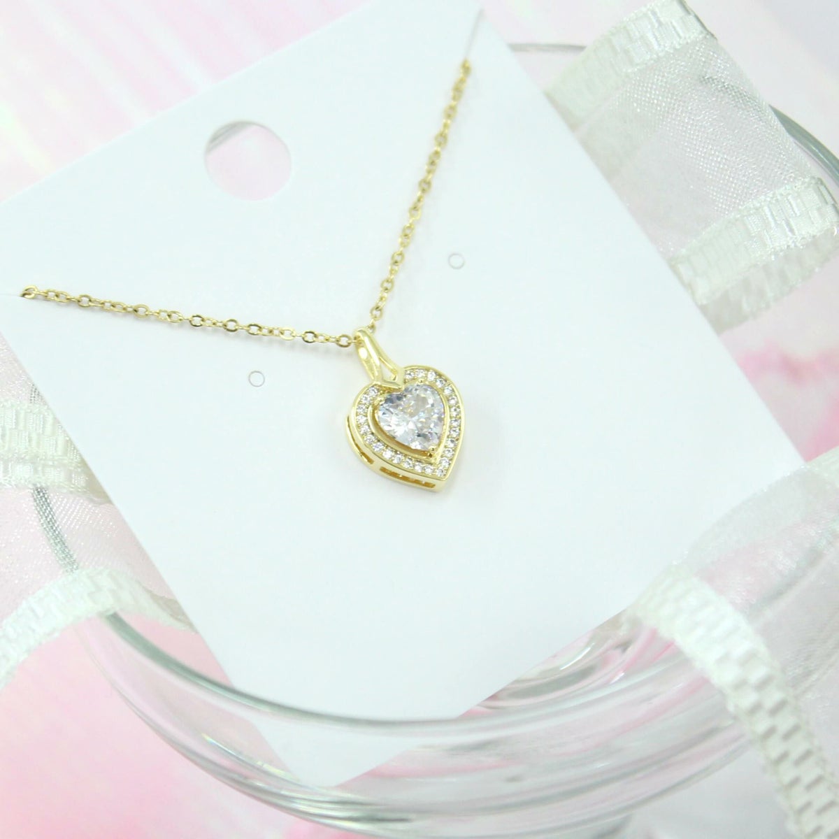 スクエアビジューハートネックレス ゴールド