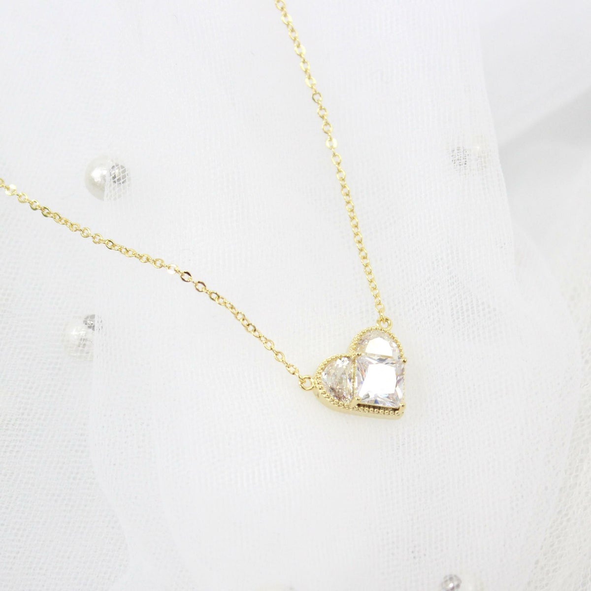 ダブルハートビジューネックレス ゴールド