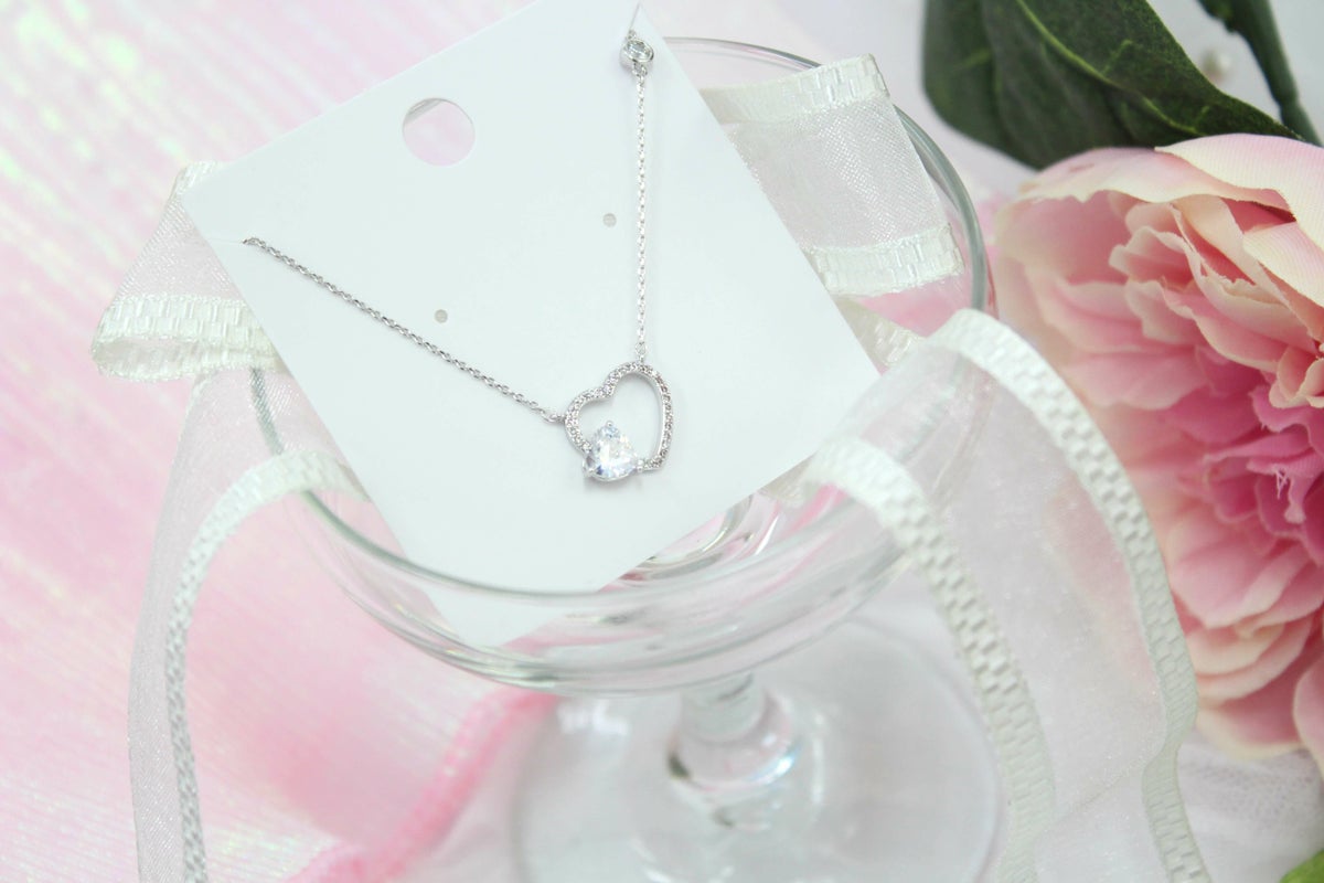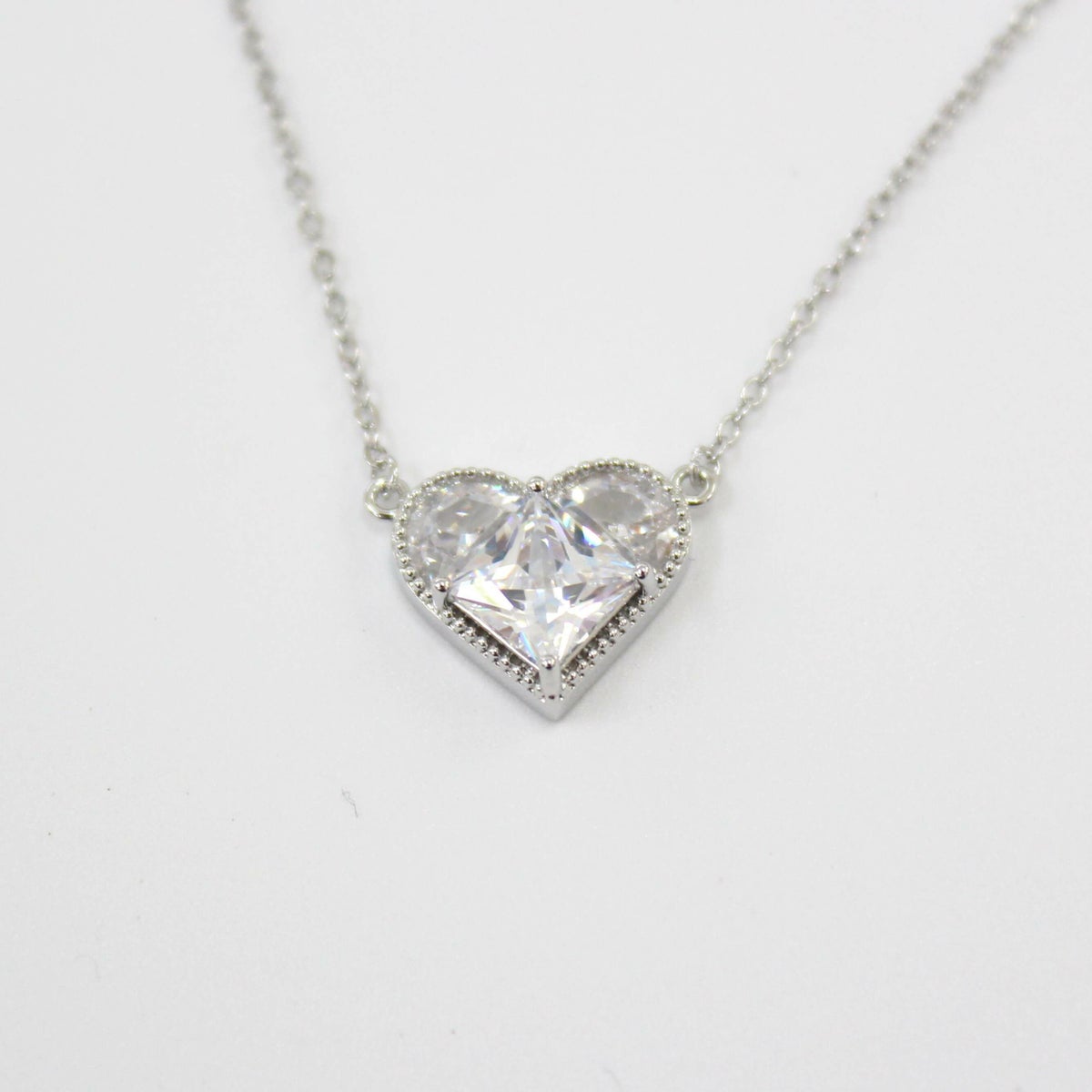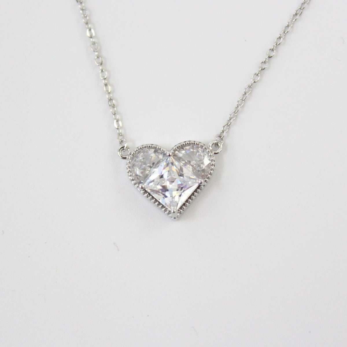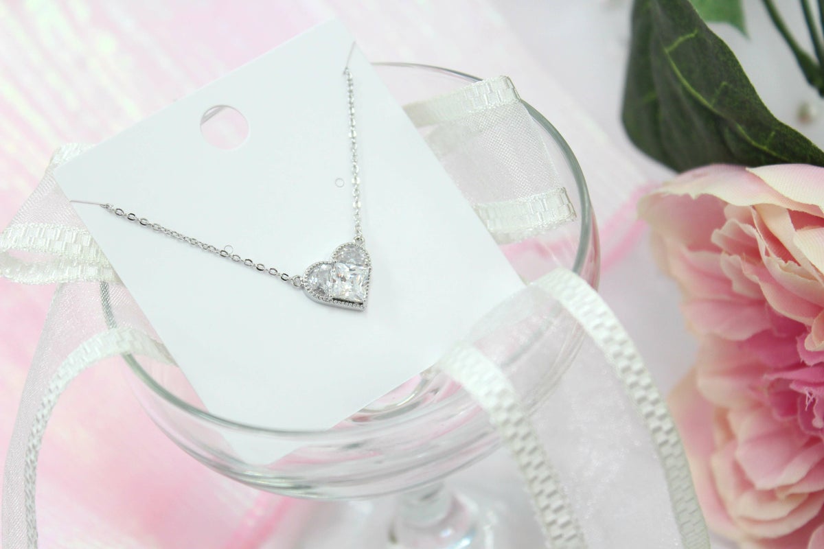 スクエアビジューハートネックレス シルバー