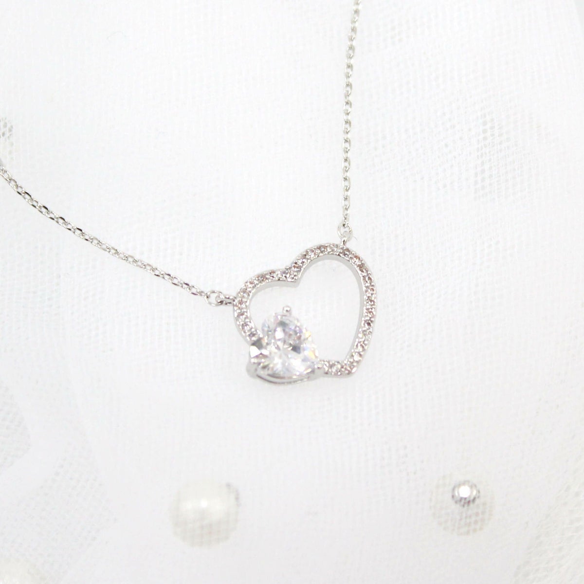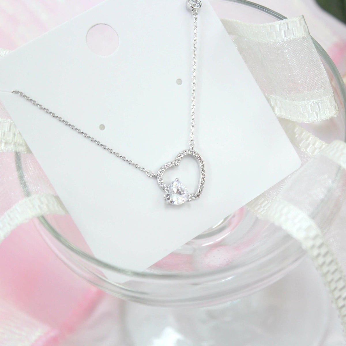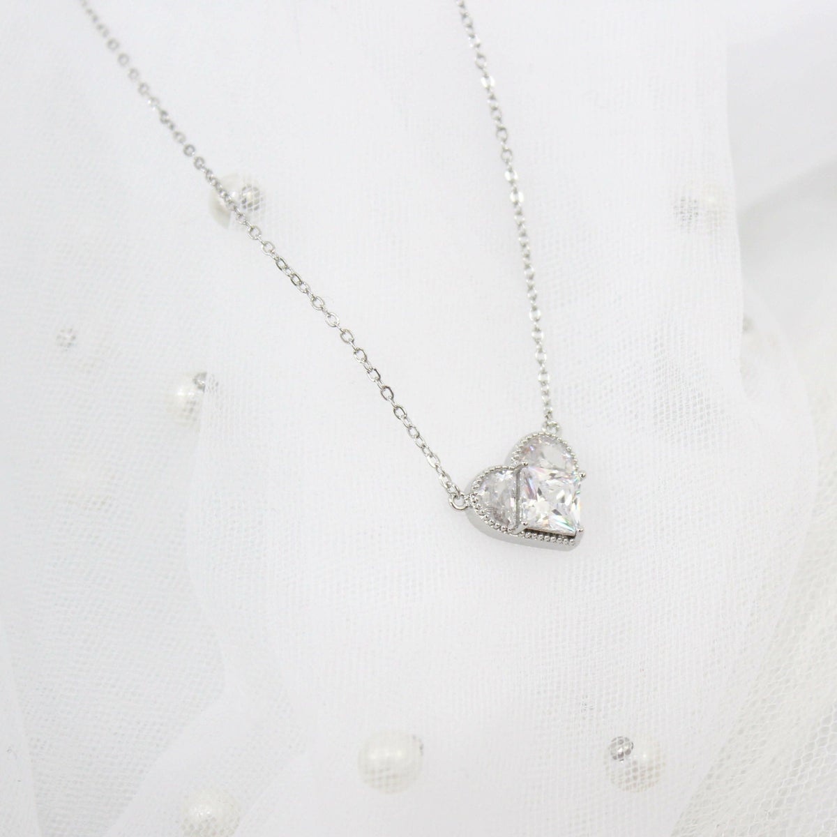 スクエアビジューハートネックレス シルバー
