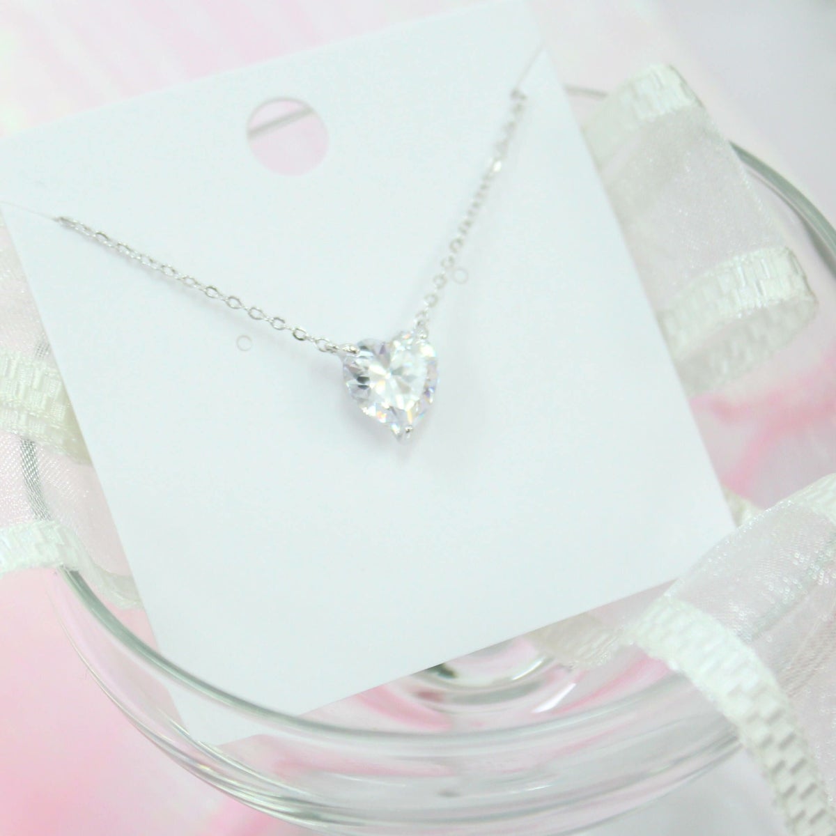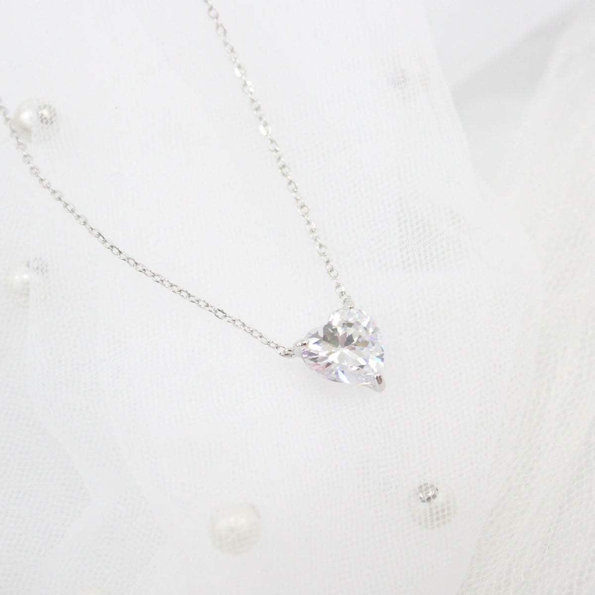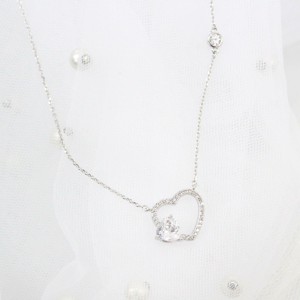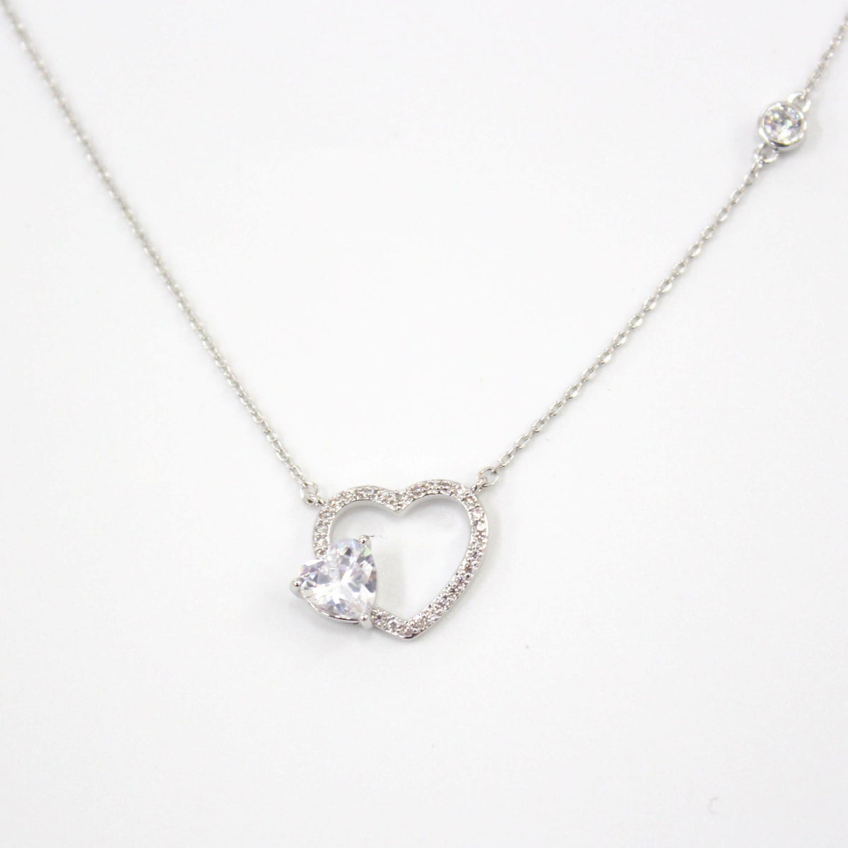 スクエアビジューハートネックレス シルバー