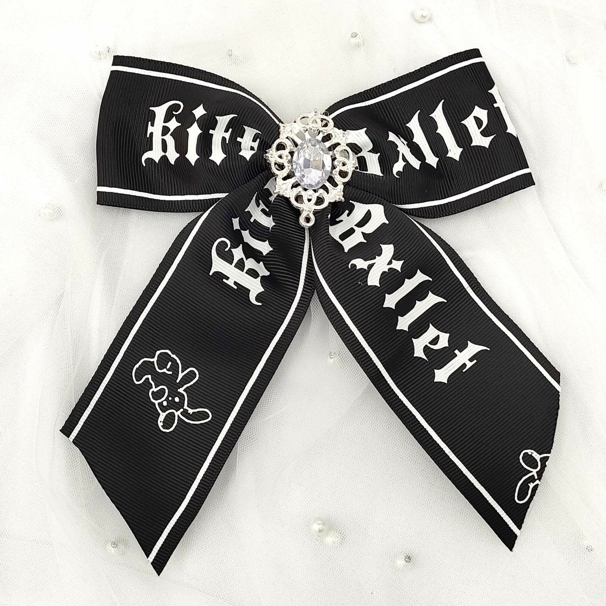 ビジューラインビッグサテンリボンカチューシャ 黒
