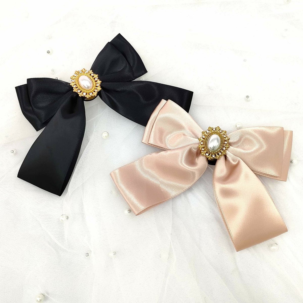 スクエアビジューパールリボン