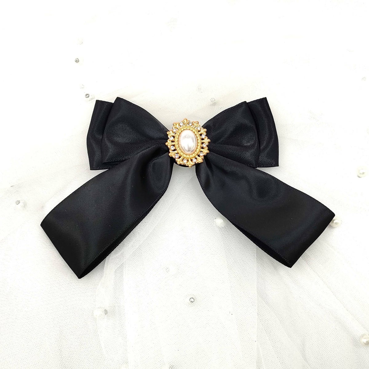ビッグサテンリボンヘアアクセ 黒