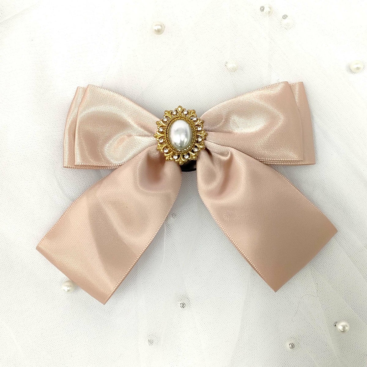ビジュー付きビッグサテンリボンヘアアクセ 茶