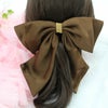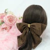 ビジュー付きビッグサテンリボンヘアアクセ 茶