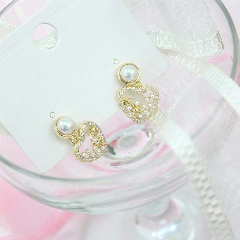 ハートのフレームに上品なパールをつけてかわいらしさと上品さをプラス。