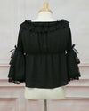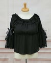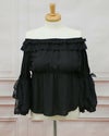 首回りもレースたっぷり。これ1枚でラウンドネックとオフショルダー(肩出し)の2通りの着方が楽しめます。