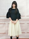 肘からふわっと扇状に広がる7分袖のパゴダスリーブ。