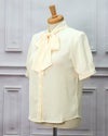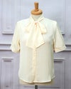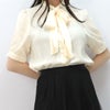3. シンプルリボンタイ半袖ブラウス クリーム フリーサイズ