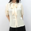 シンプルリボンタイ半袖ブラウス クリーム フリーサイズ