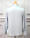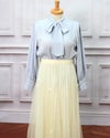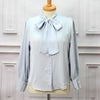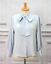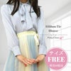 胸元にリボンをつけたシンプルで上品なブラウスです。