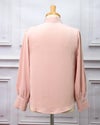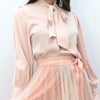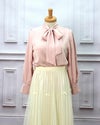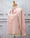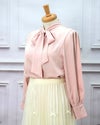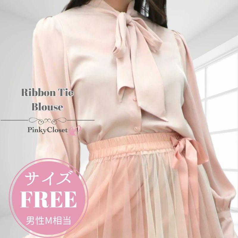 3. シンプルリボンタイ長袖ブラウス ピンク フリーサイズ