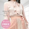 胸元にリボンをつけたシンプルで上品なブラウスです。