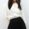 3. シンプルリボンタイ長袖ブラウス 白 フリーサイズ
