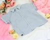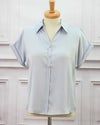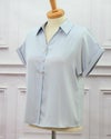 3. シンプル半袖シャツブラウス 水色 フリーサイズ