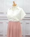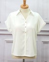 3. シンプル半袖シャツブラウス 白 フリーサイズ