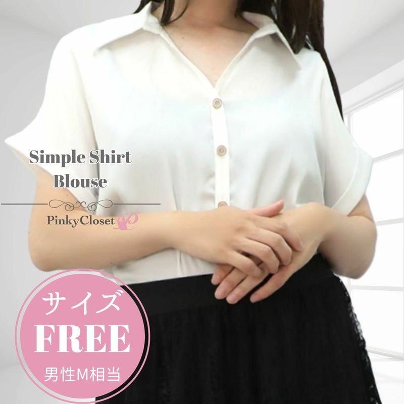 シンプル半袖シャツブラウス 白 フリーサイズ