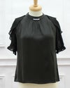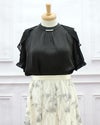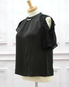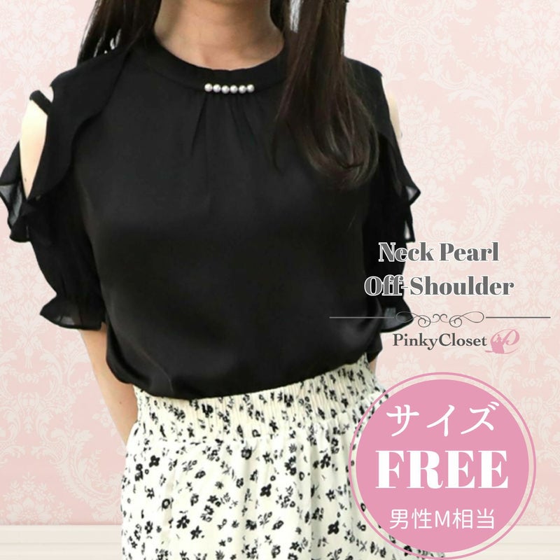 首元にパールをつけることでセクシーさと上品さのバランスがとてもよいブラウスになっています。