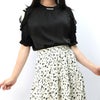 カラーもブラックでモノトーンなコーデや赤いスカートなどにとっても合う一着になります。