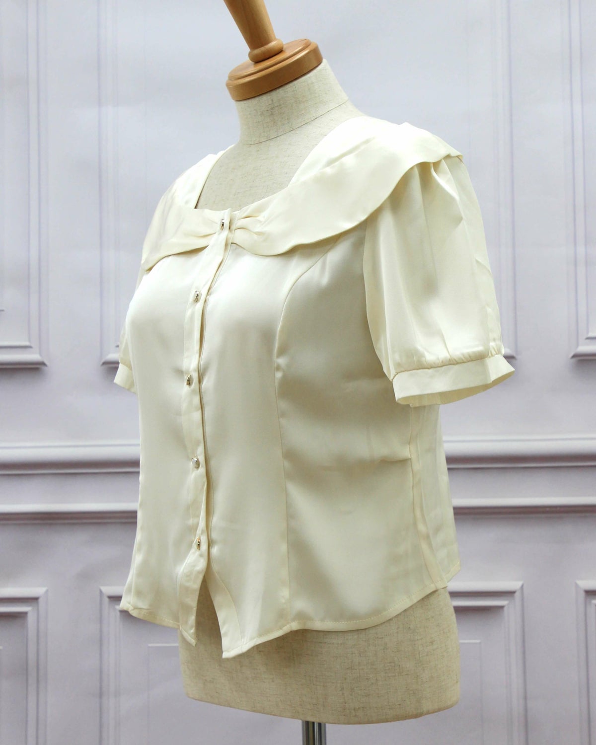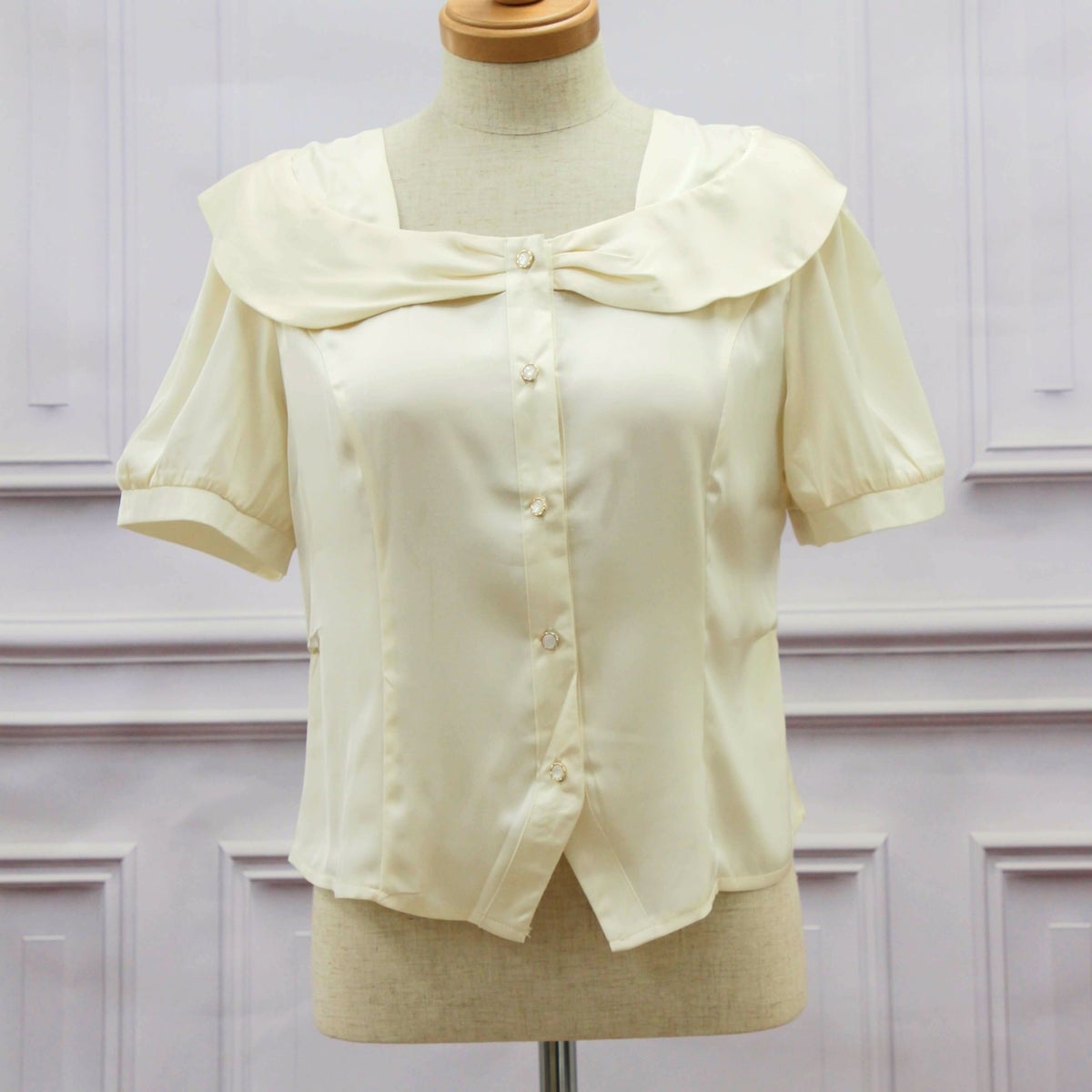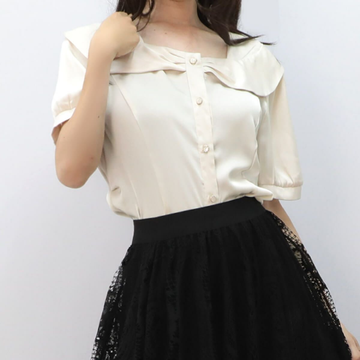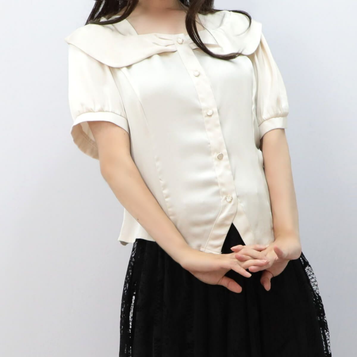 リボンスクエアカラー半袖ブラウス フリーサイズ