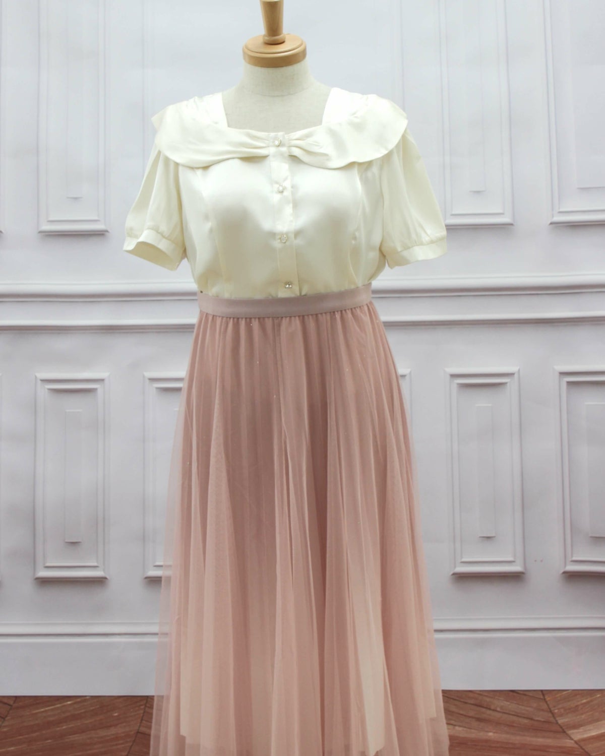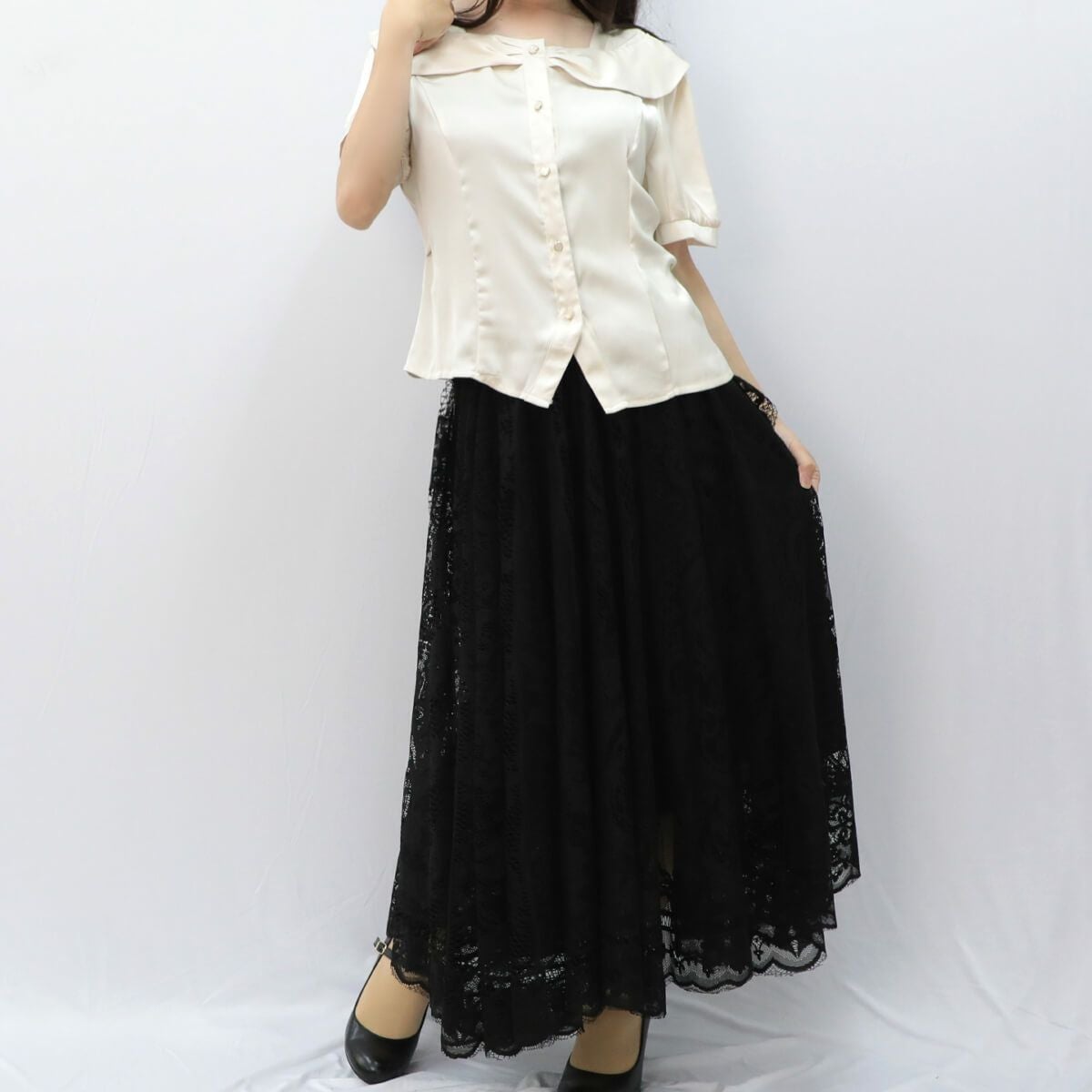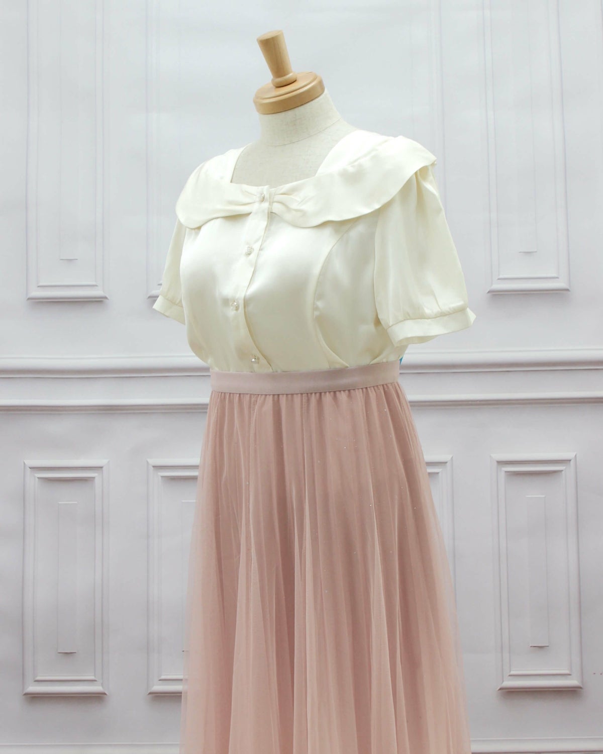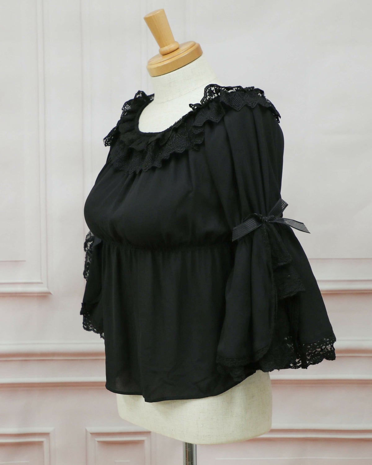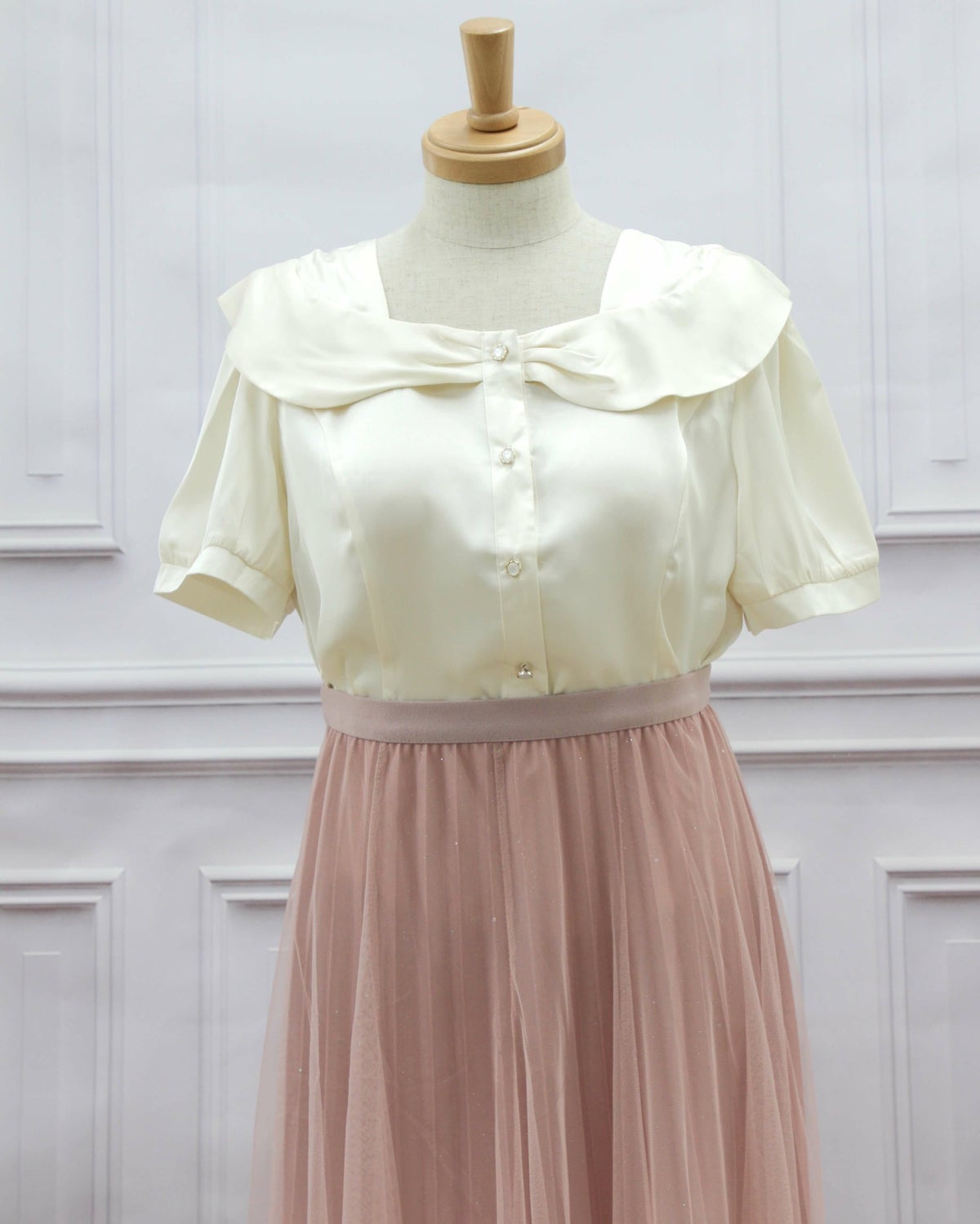 リボンスクエアカラー半袖ブラウス フリーサイズ