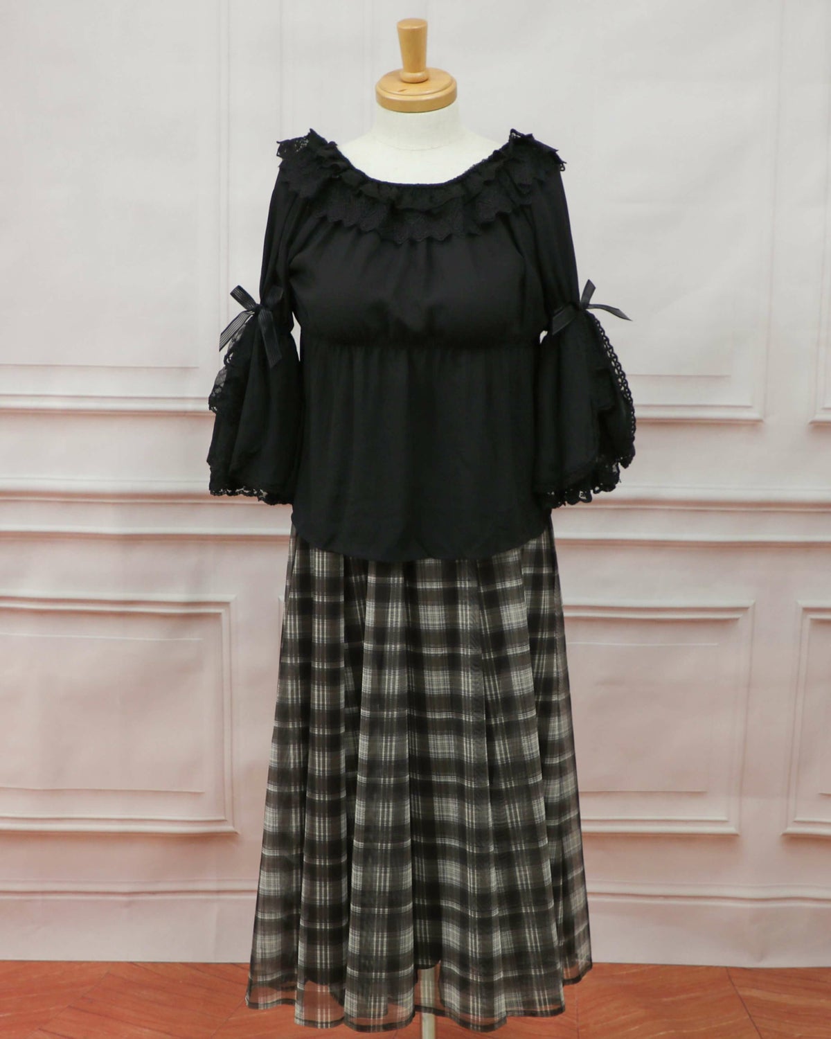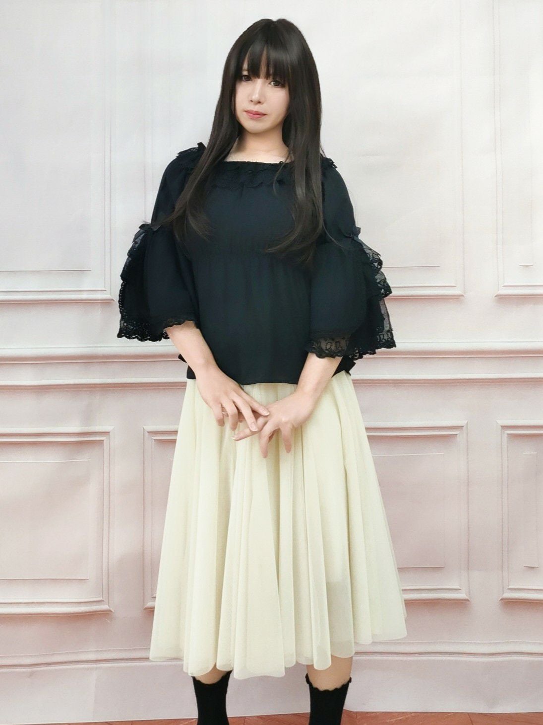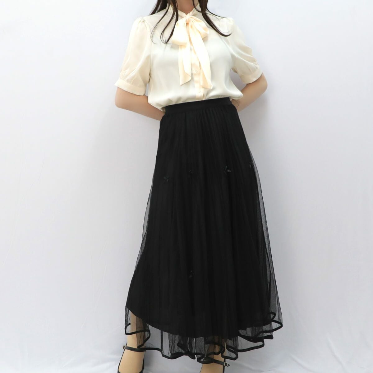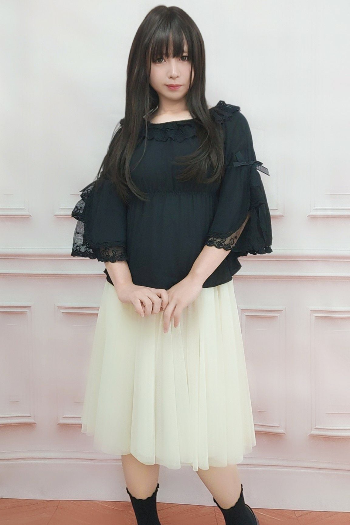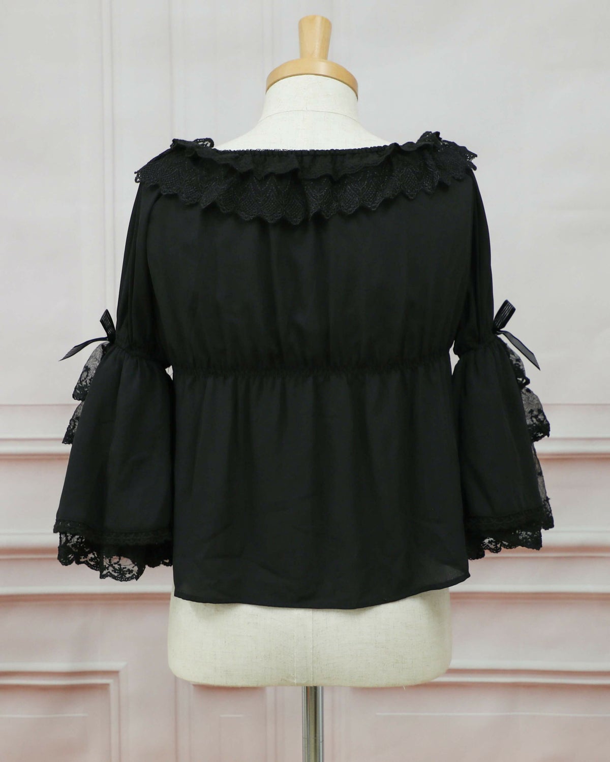 ネックパールオフショル半袖ブラウス 黒 フリーサイズ