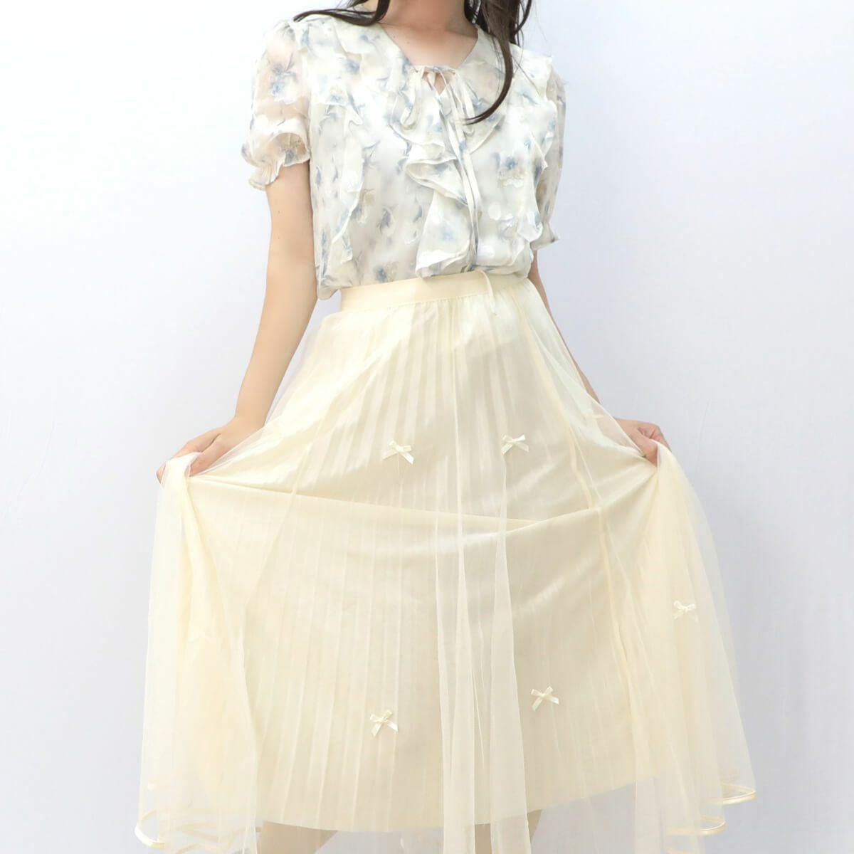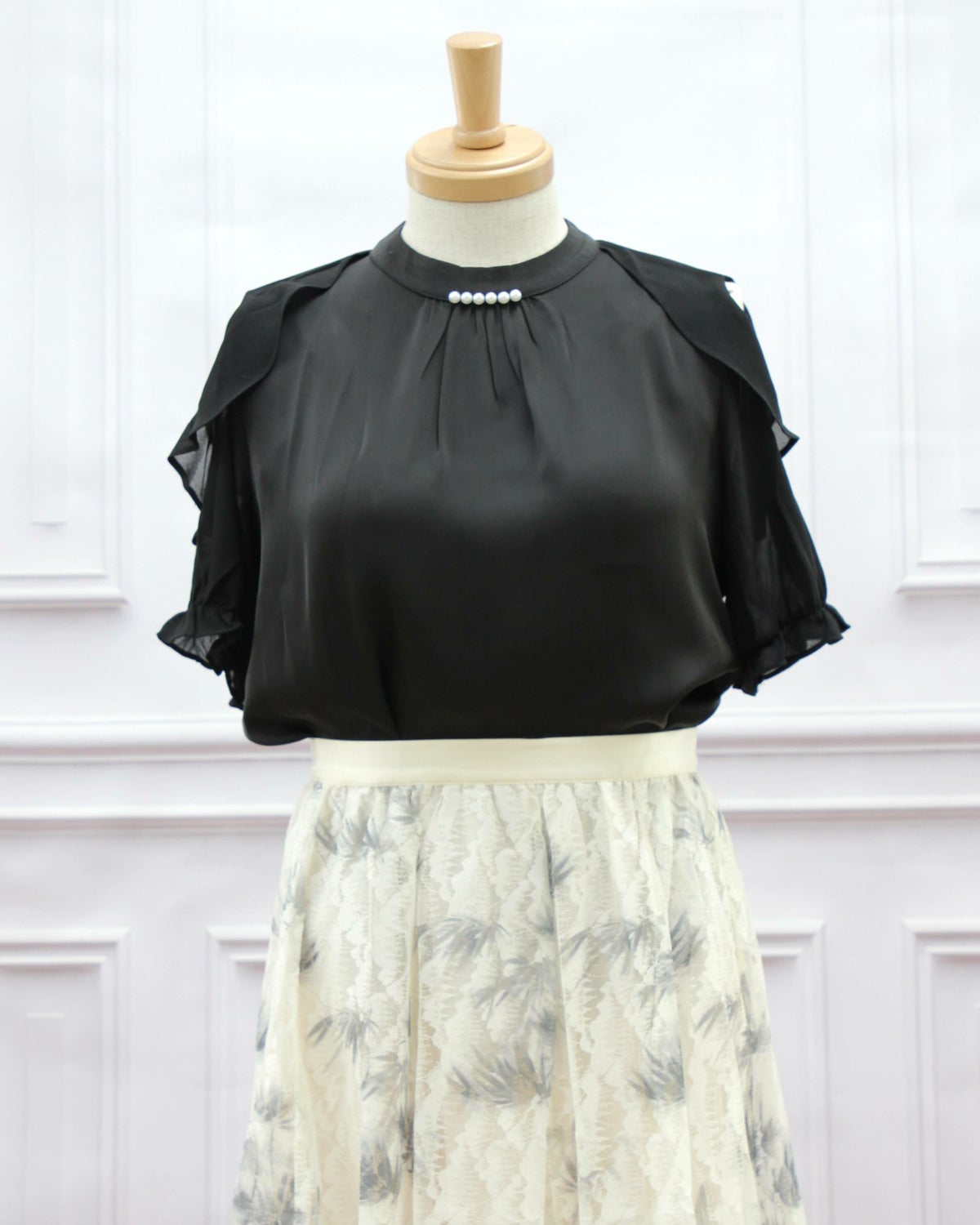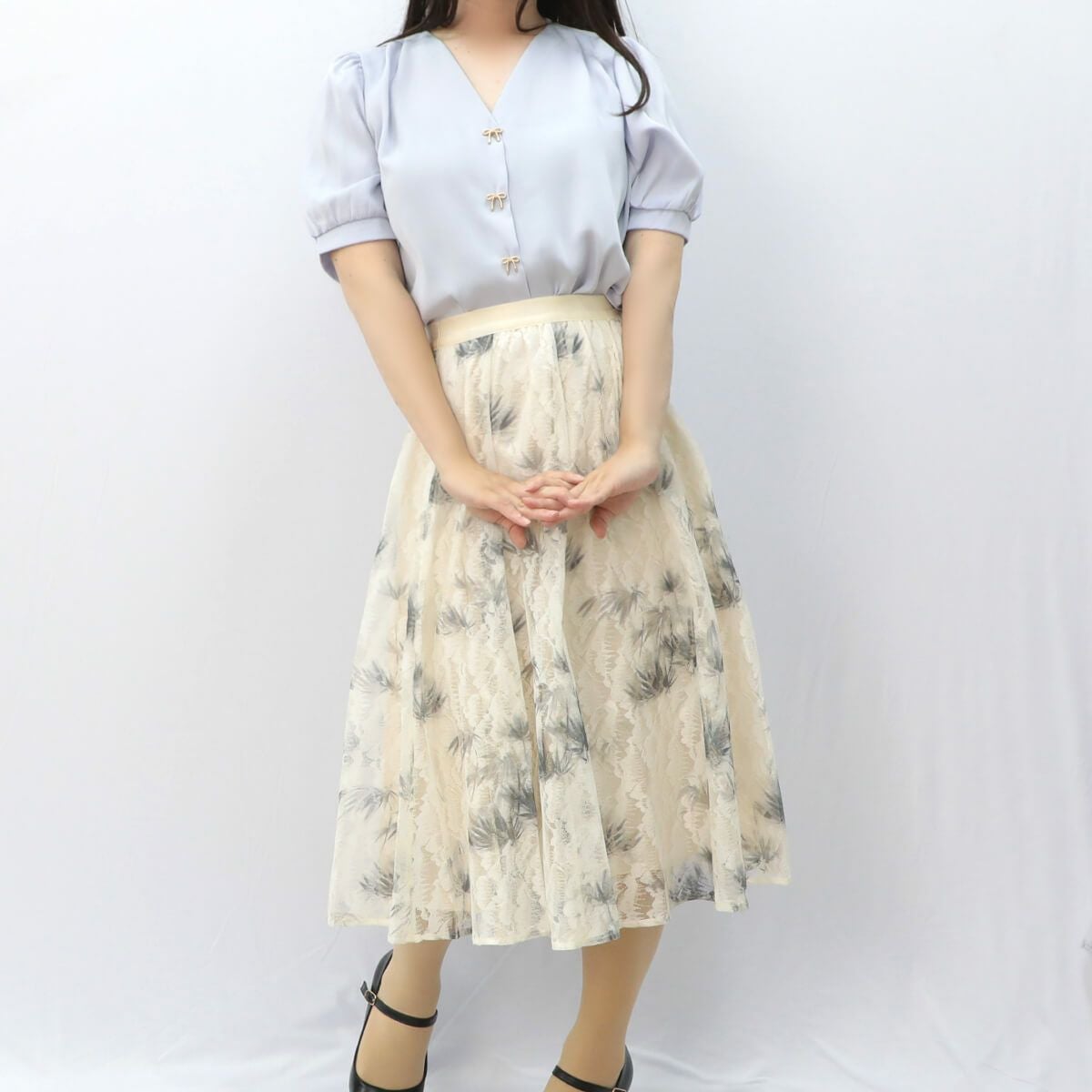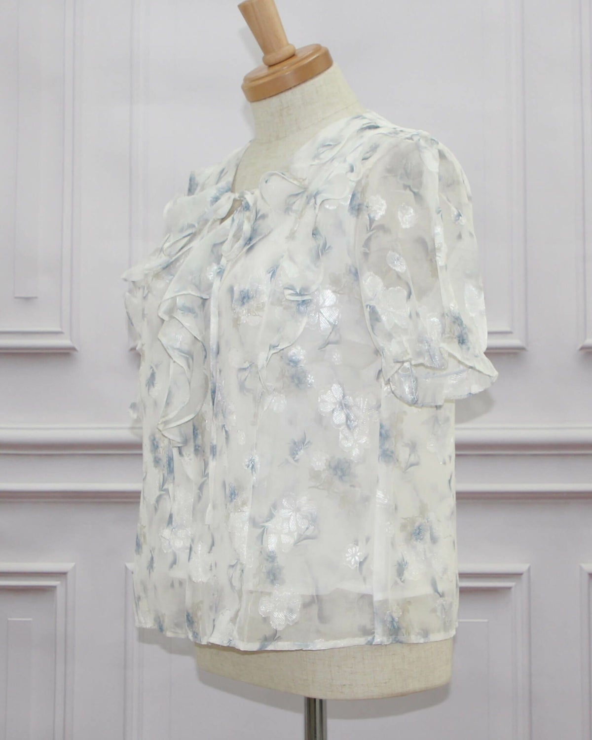フリル花柄シアー半袖ブラウス フリーサイズ