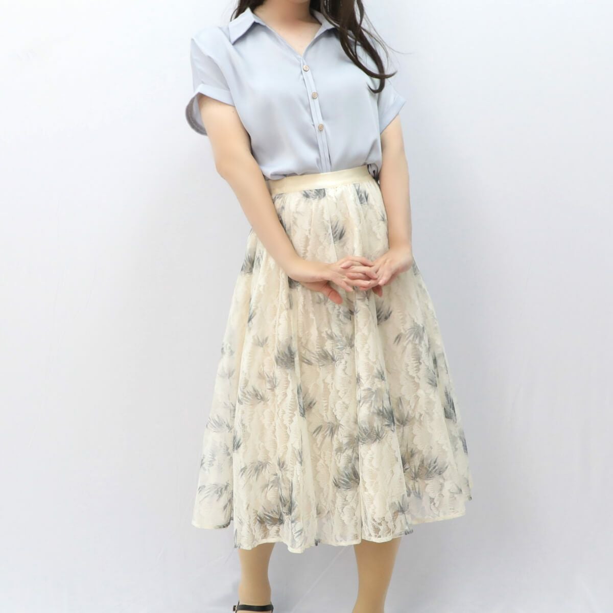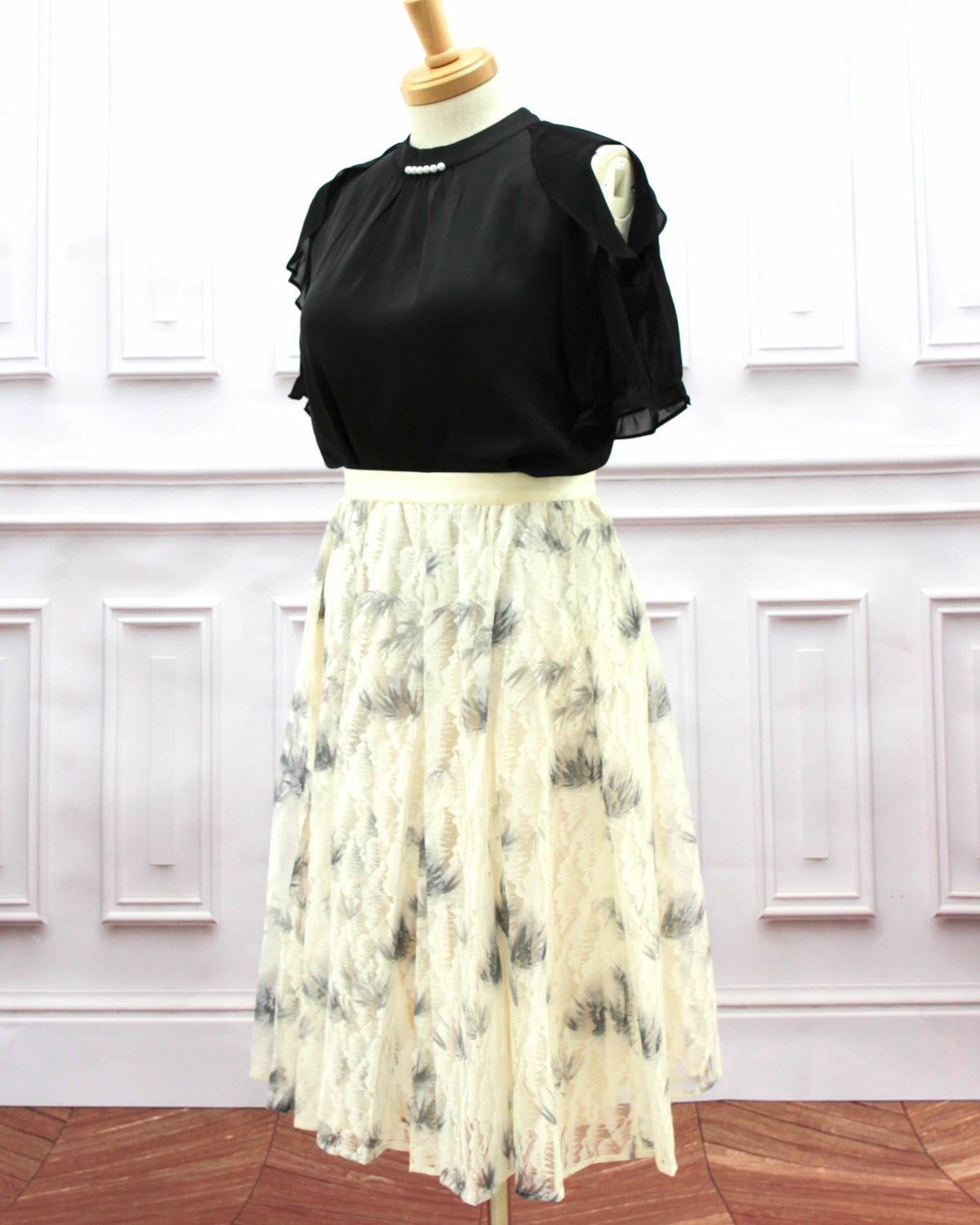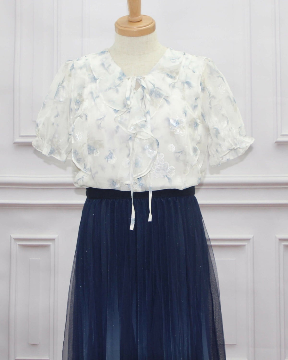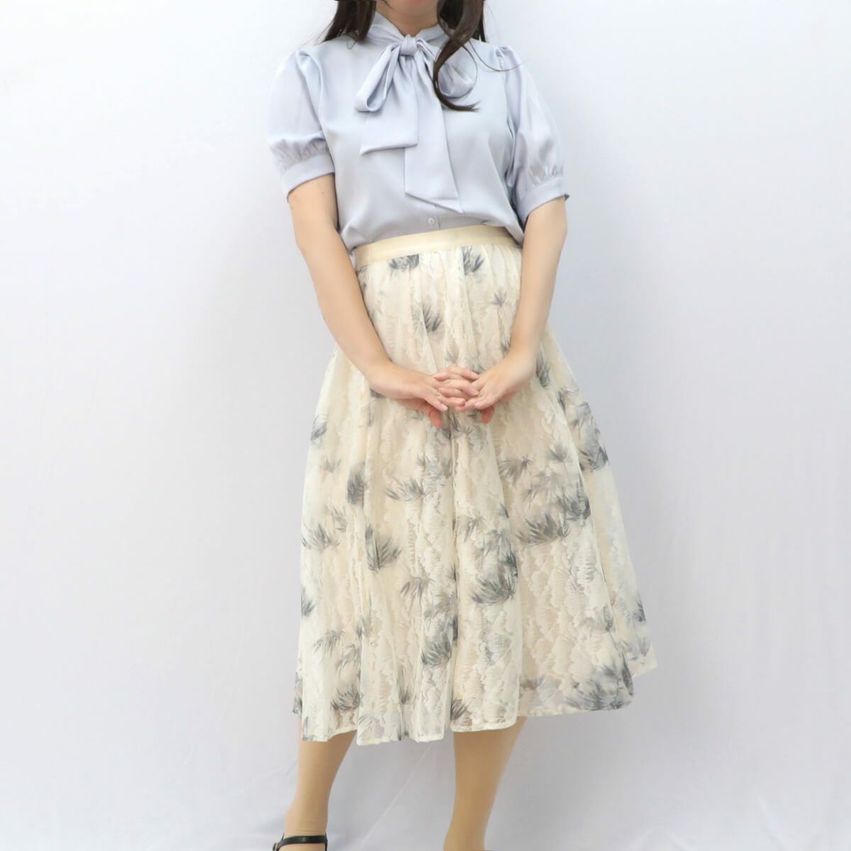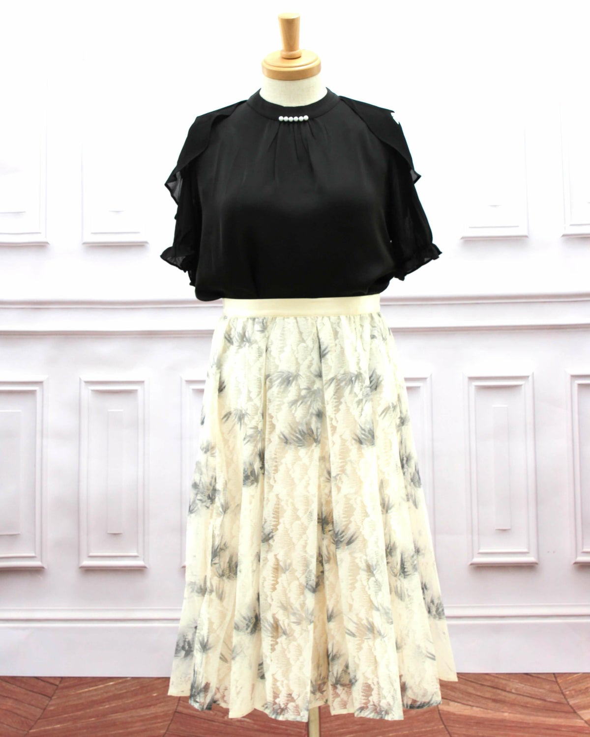 フリル花柄シアー半袖ブラウス フリーサイズ