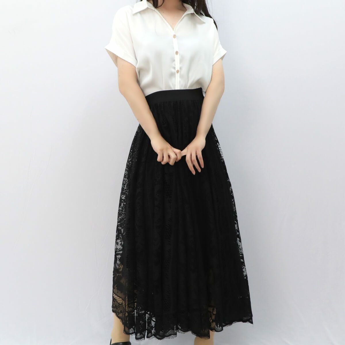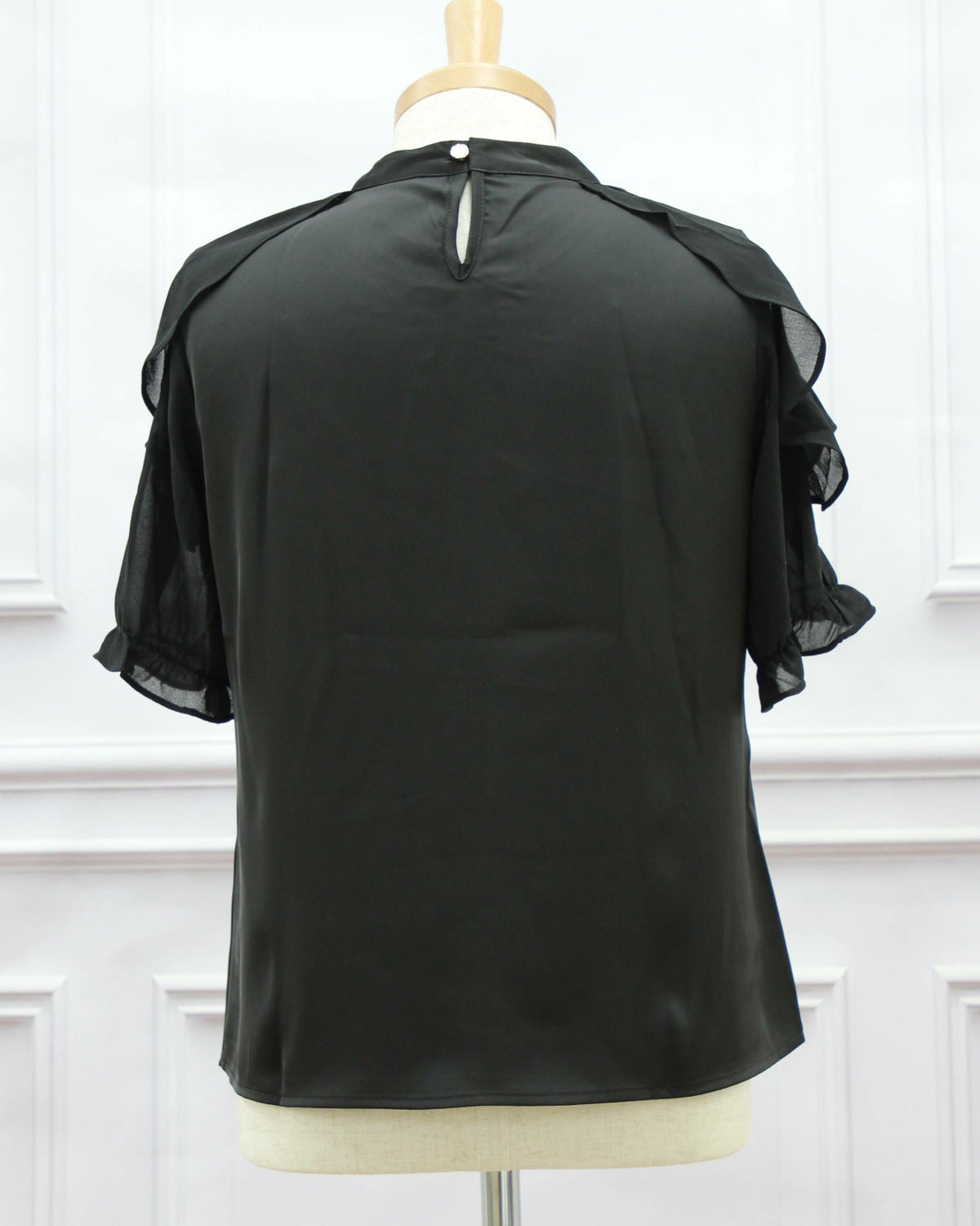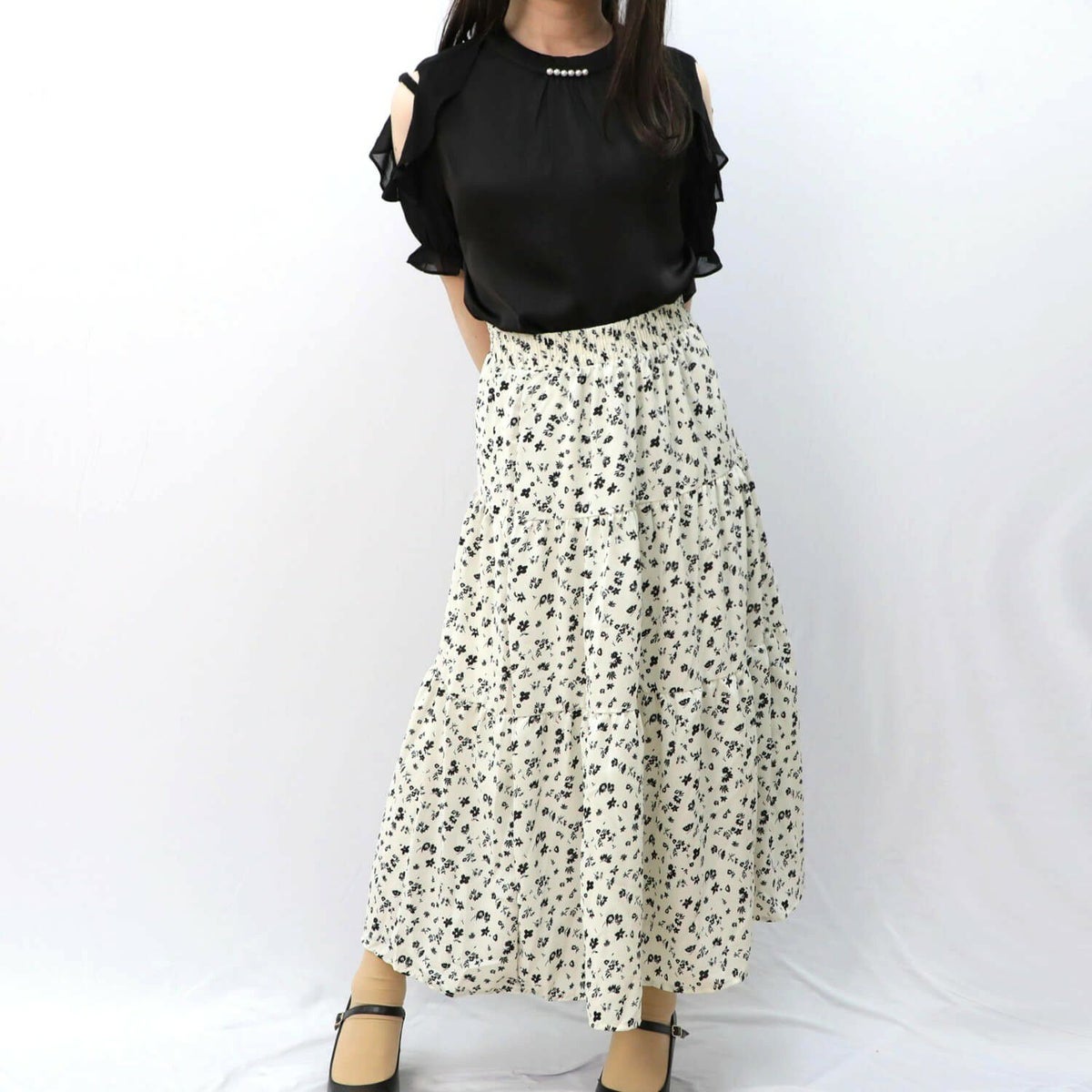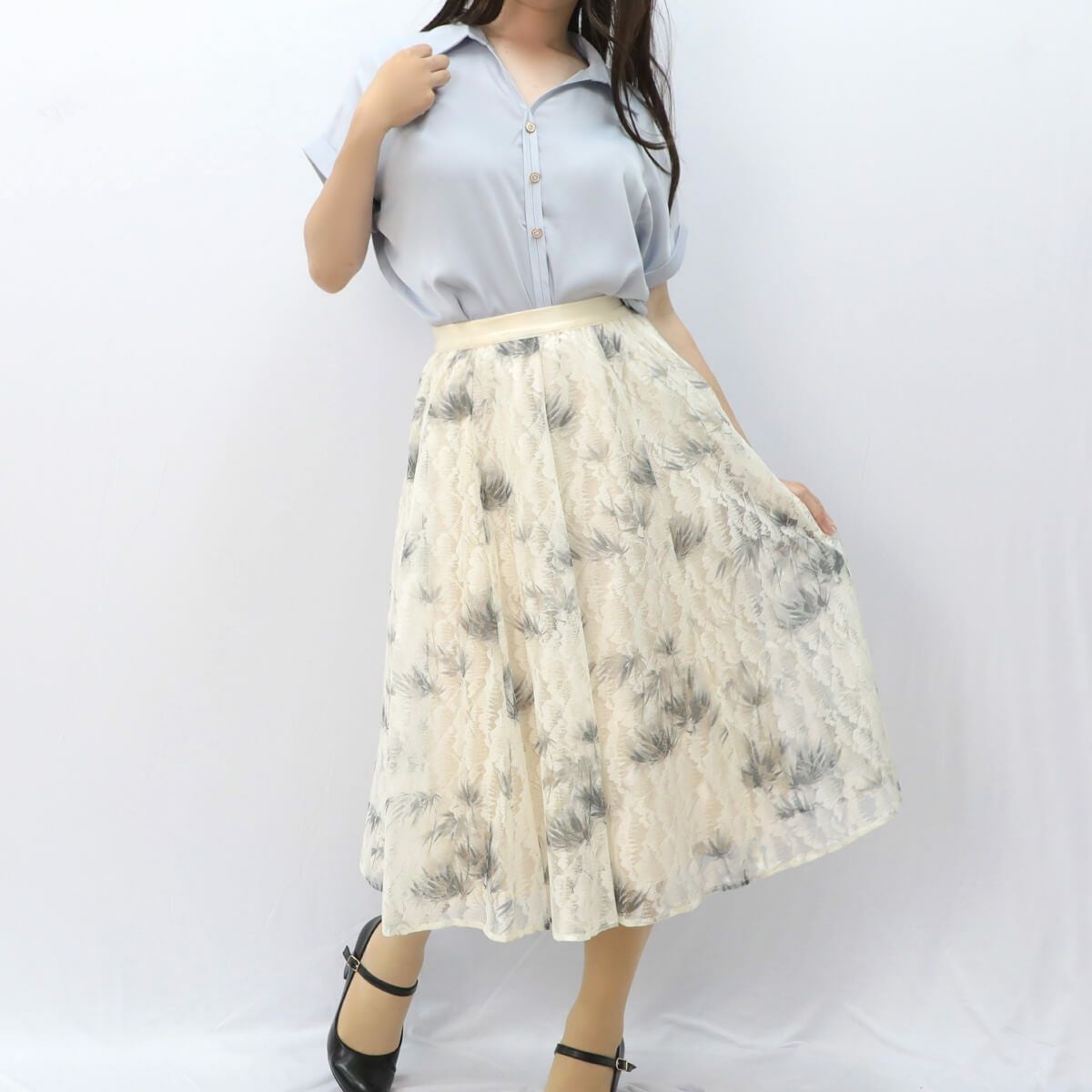 フリル花柄シアー半袖ブラウス フリーサイズ