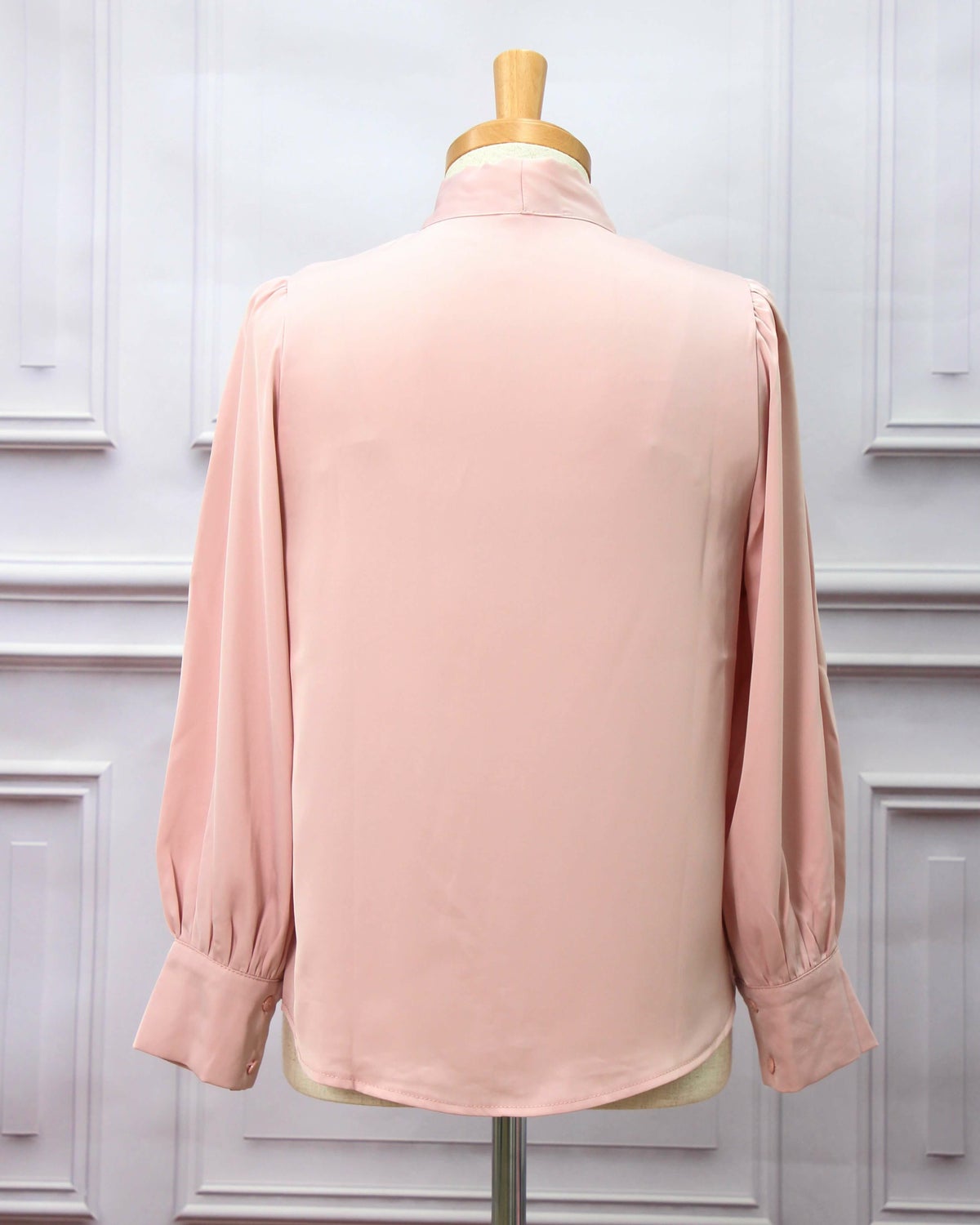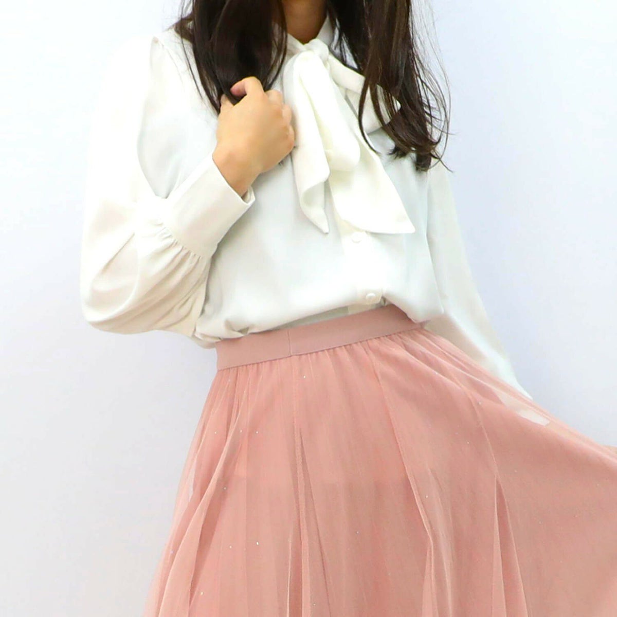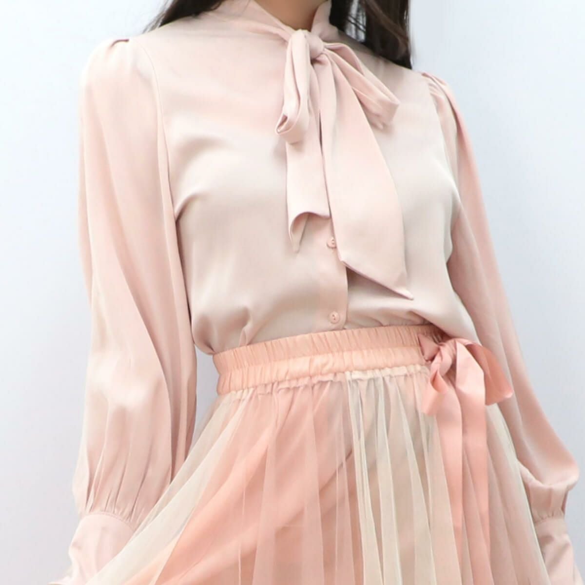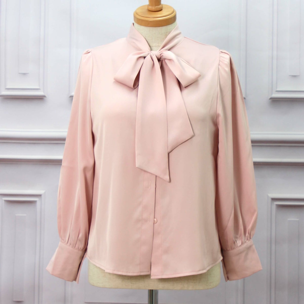 シンプルリボンタイ長袖ブラウス ピンク フリーサイズ