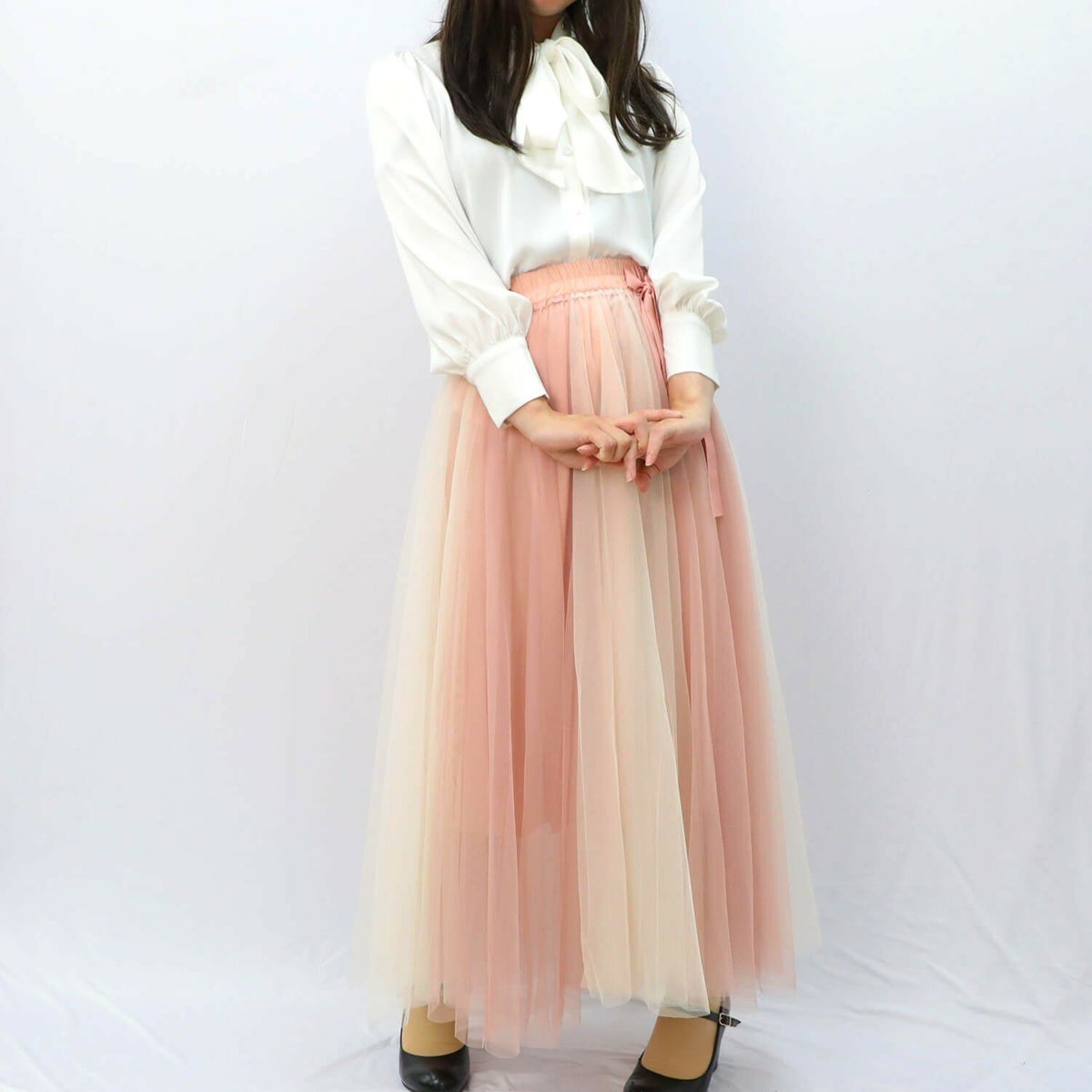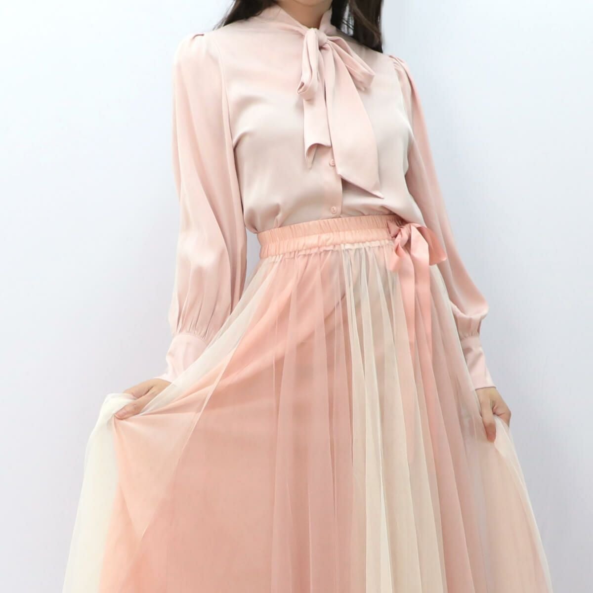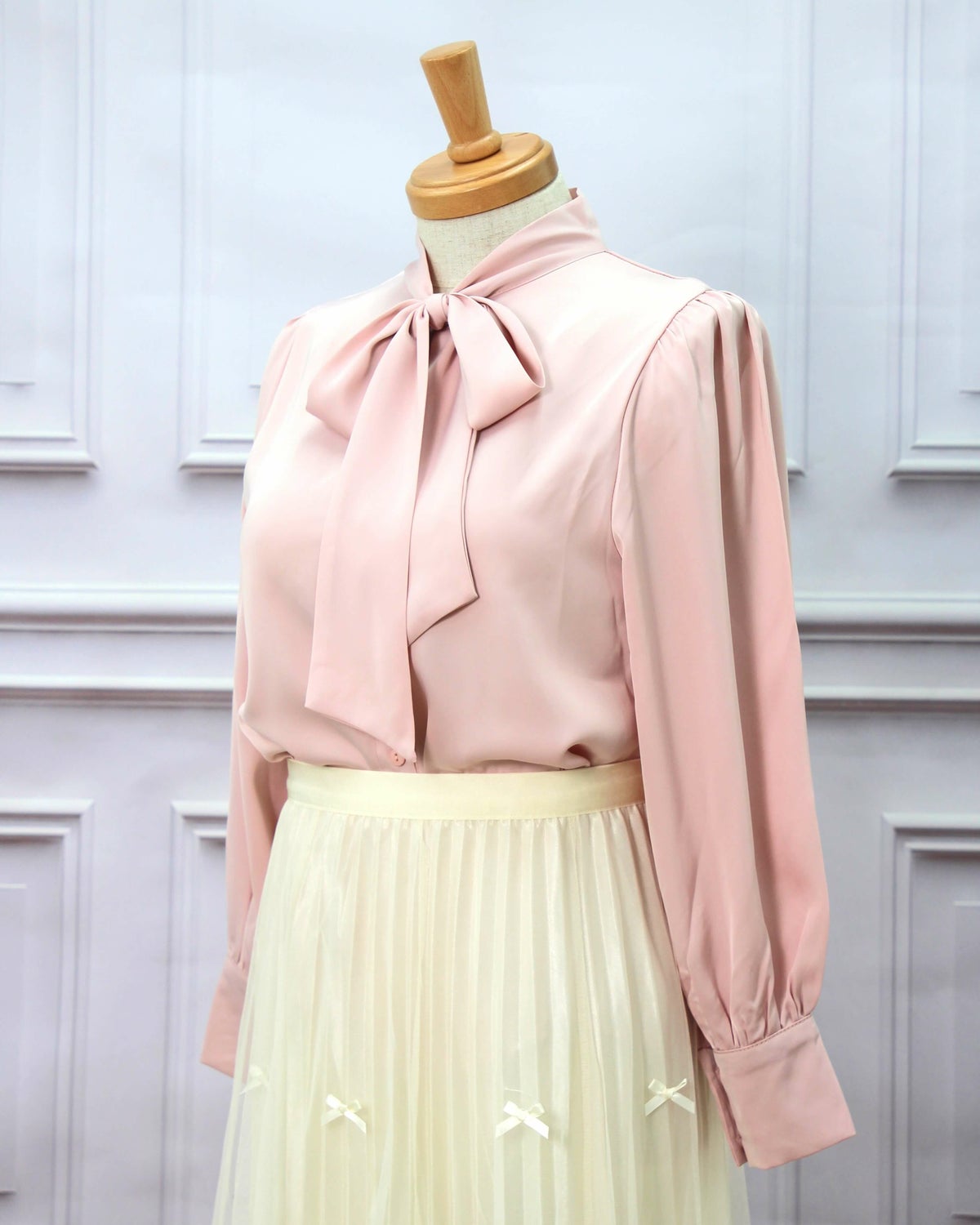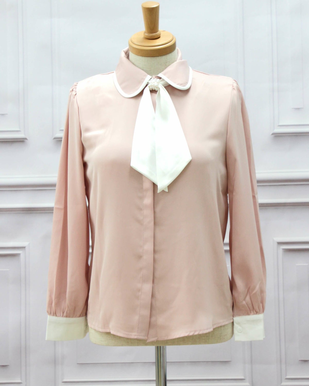 シンプルリボンタイ長袖ブラウス ピンク フリーサイズ