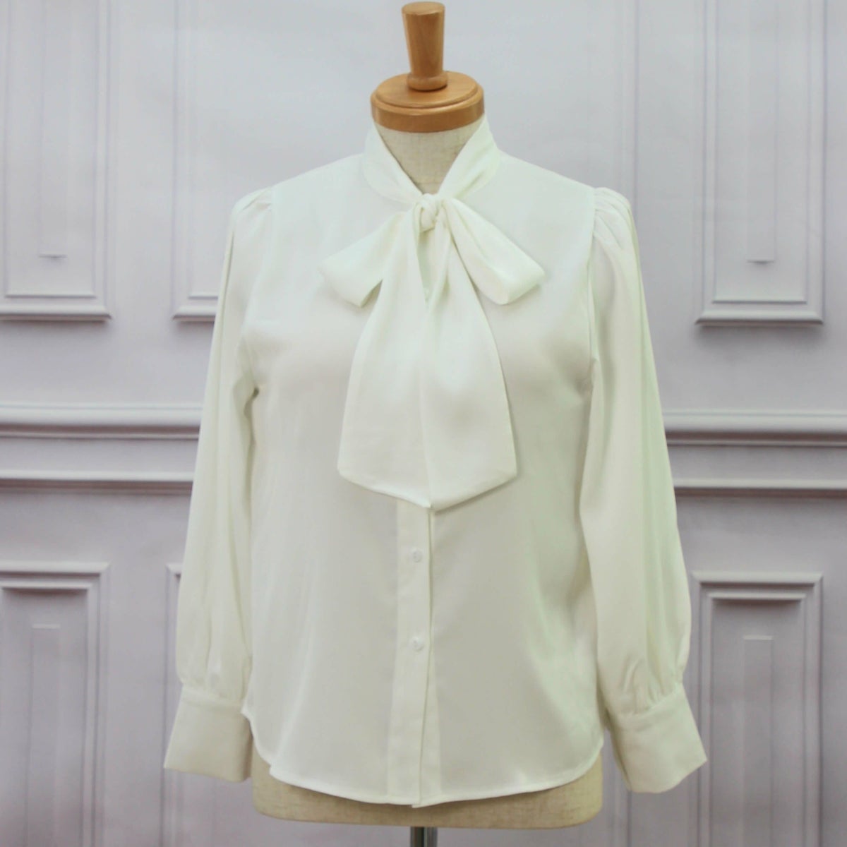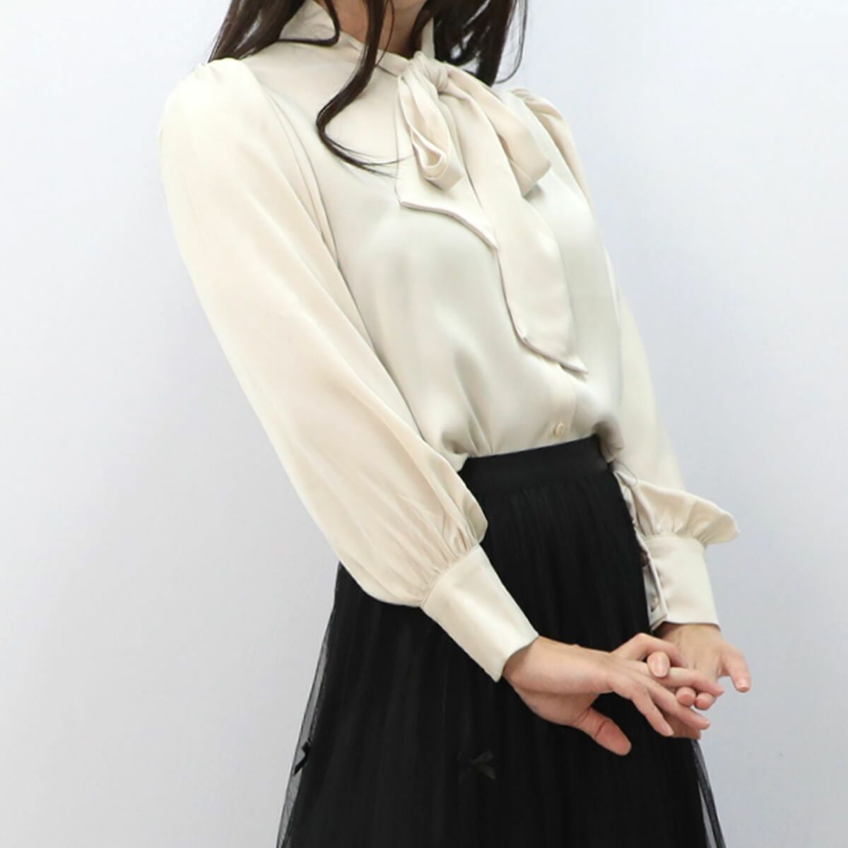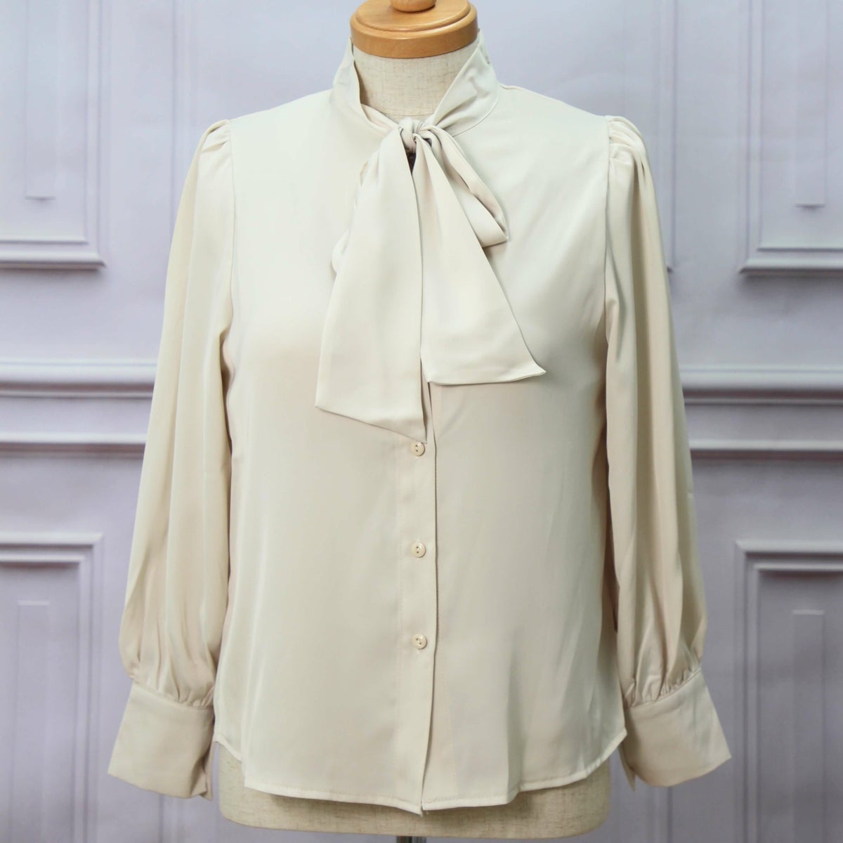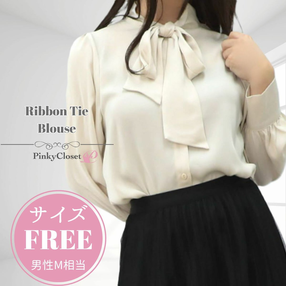 シンプルリボンタイ長袖ブラウス クリーム フリーサイズ
