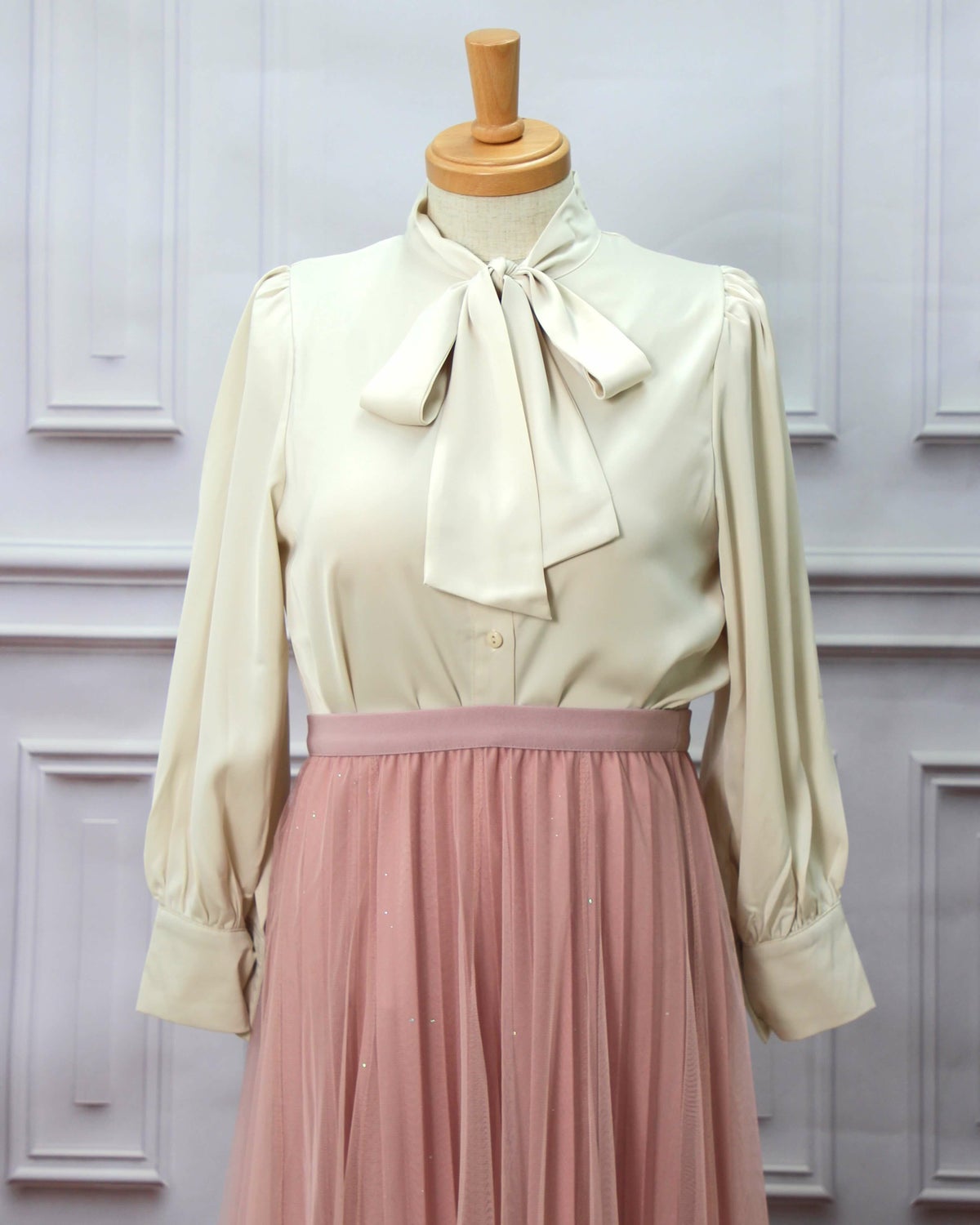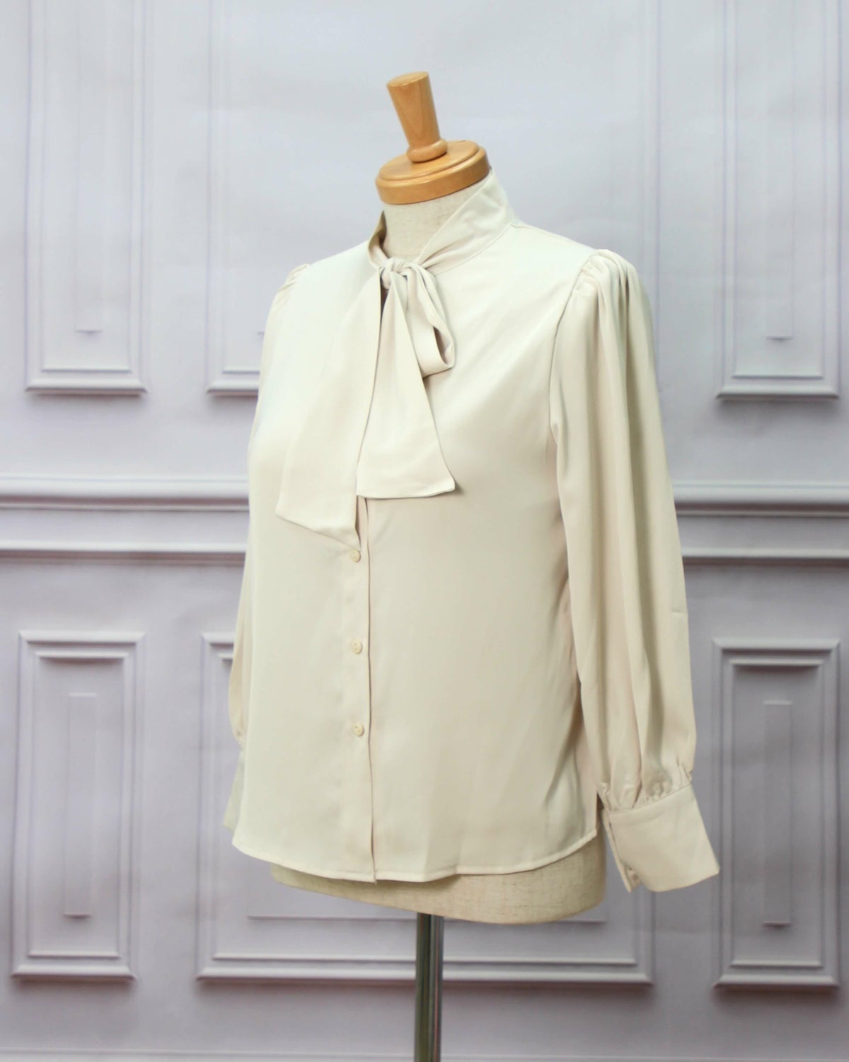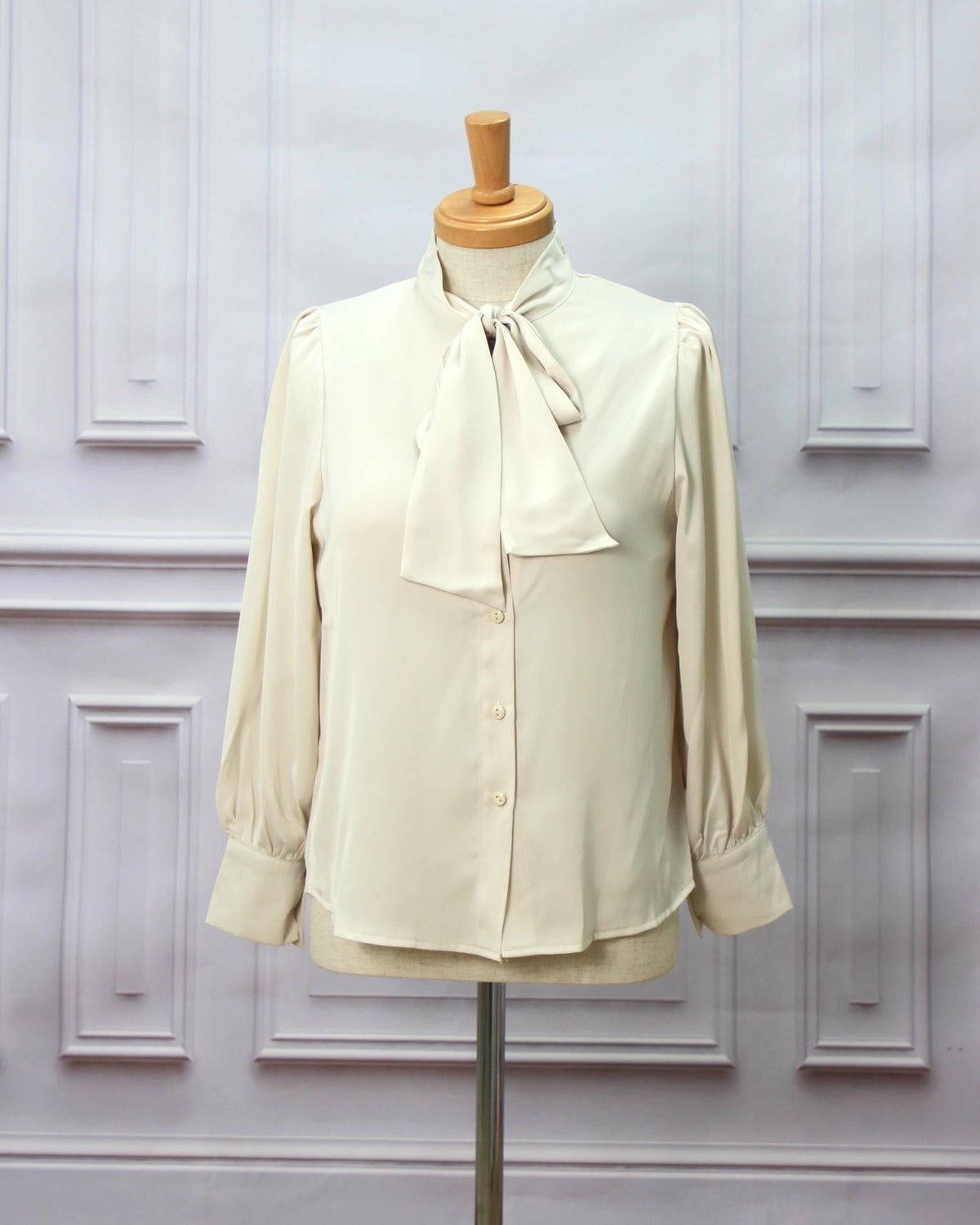 シンプルリボンタイ長袖ブラウス クリーム フリーサイズ