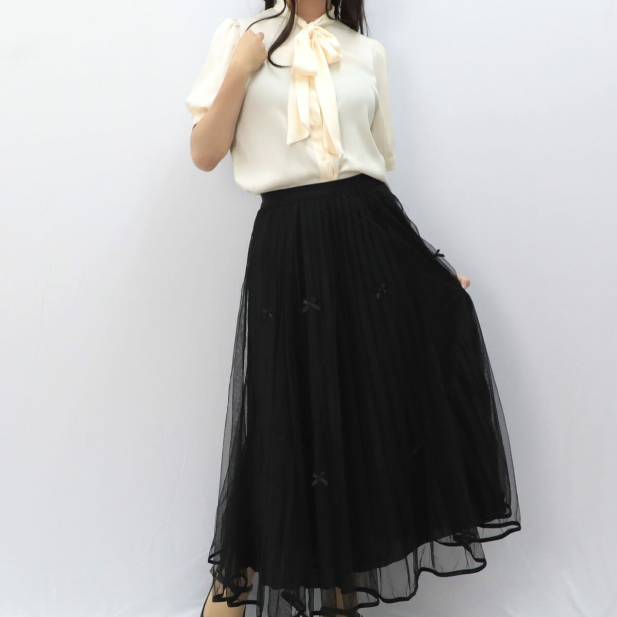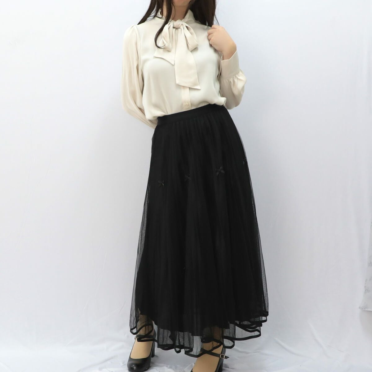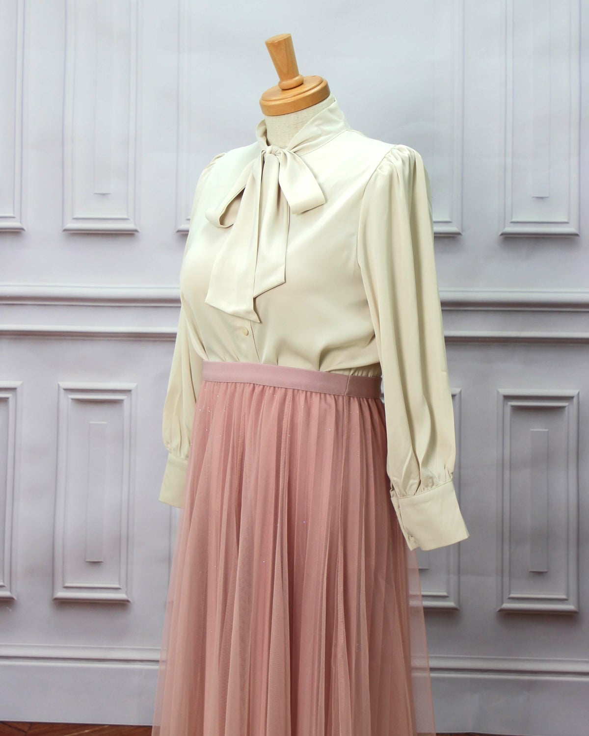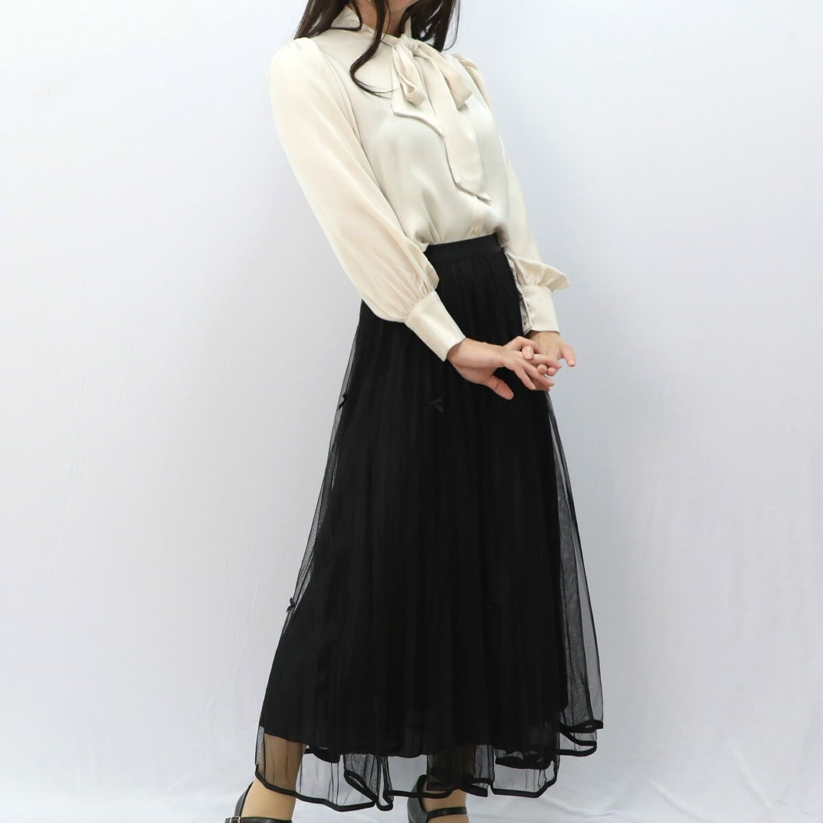 シンプルリボンタイ長袖ブラウス クリーム フリーサイズ
