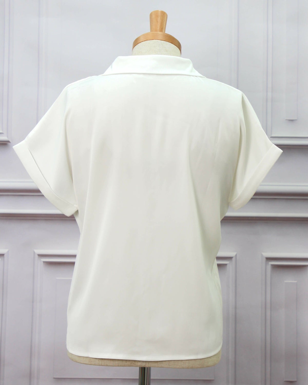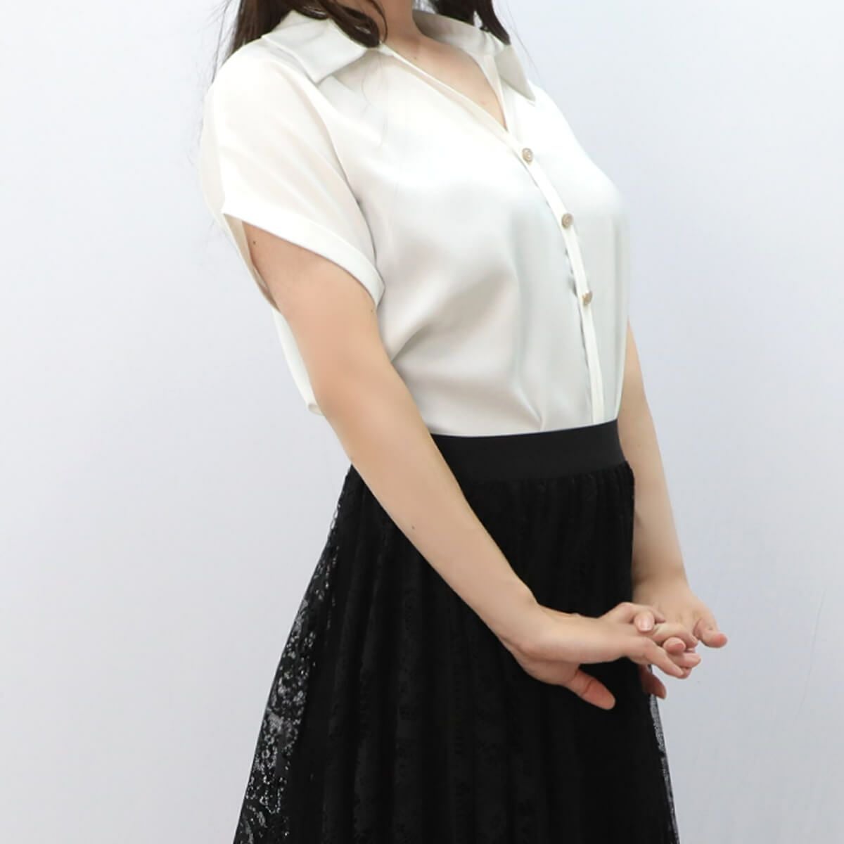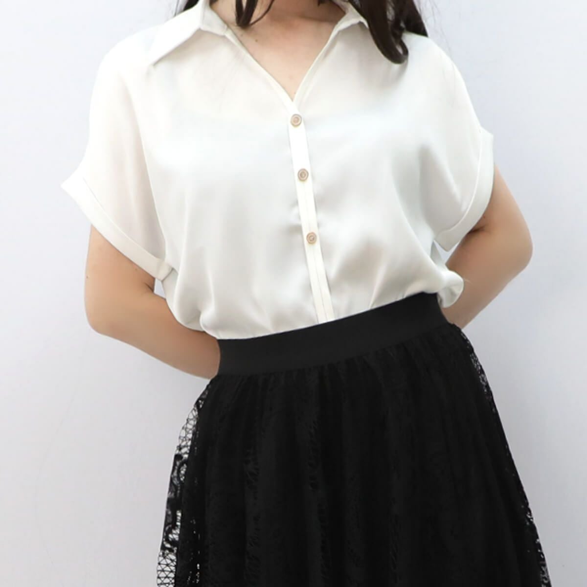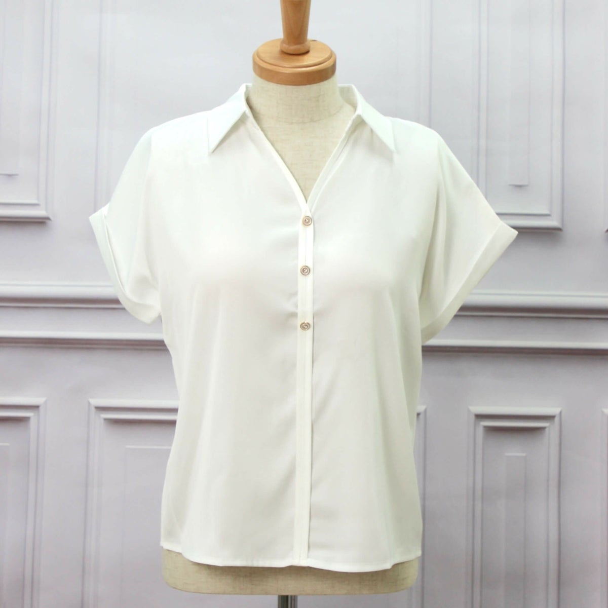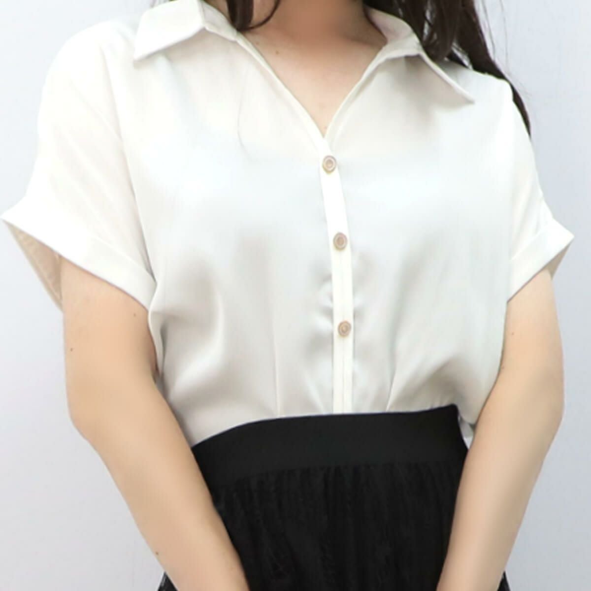 シンプル半袖シャツブラウス 白 フリーサイズ