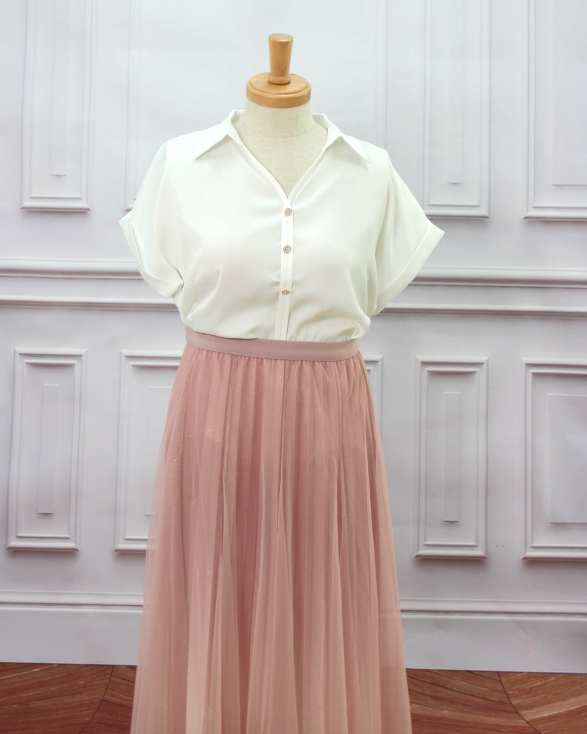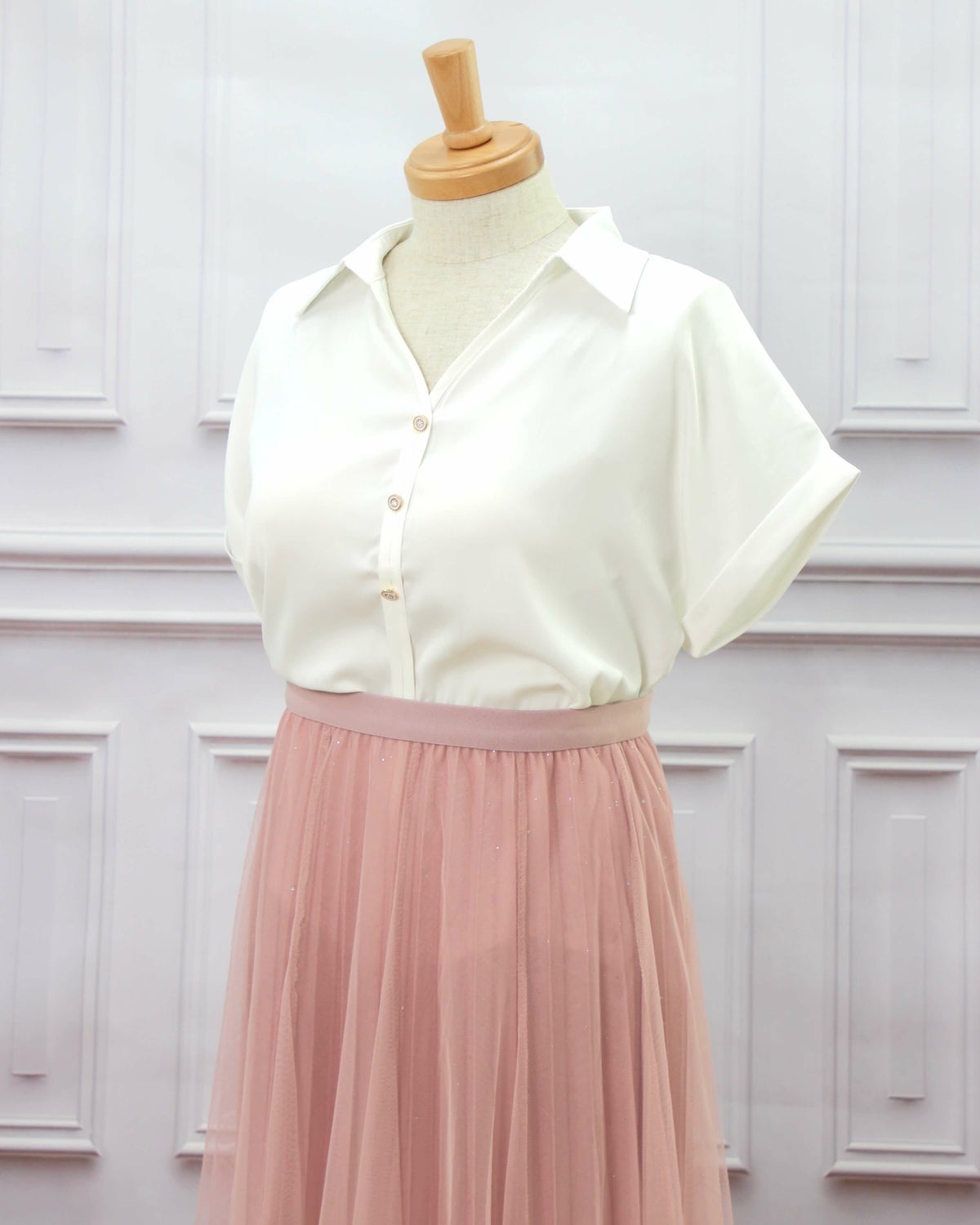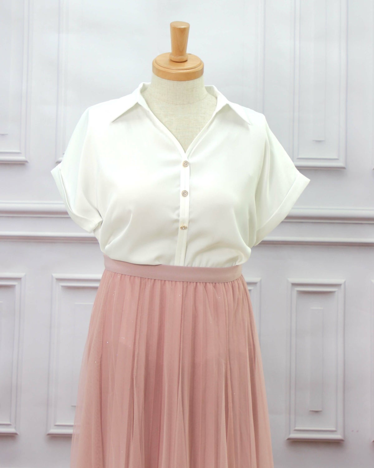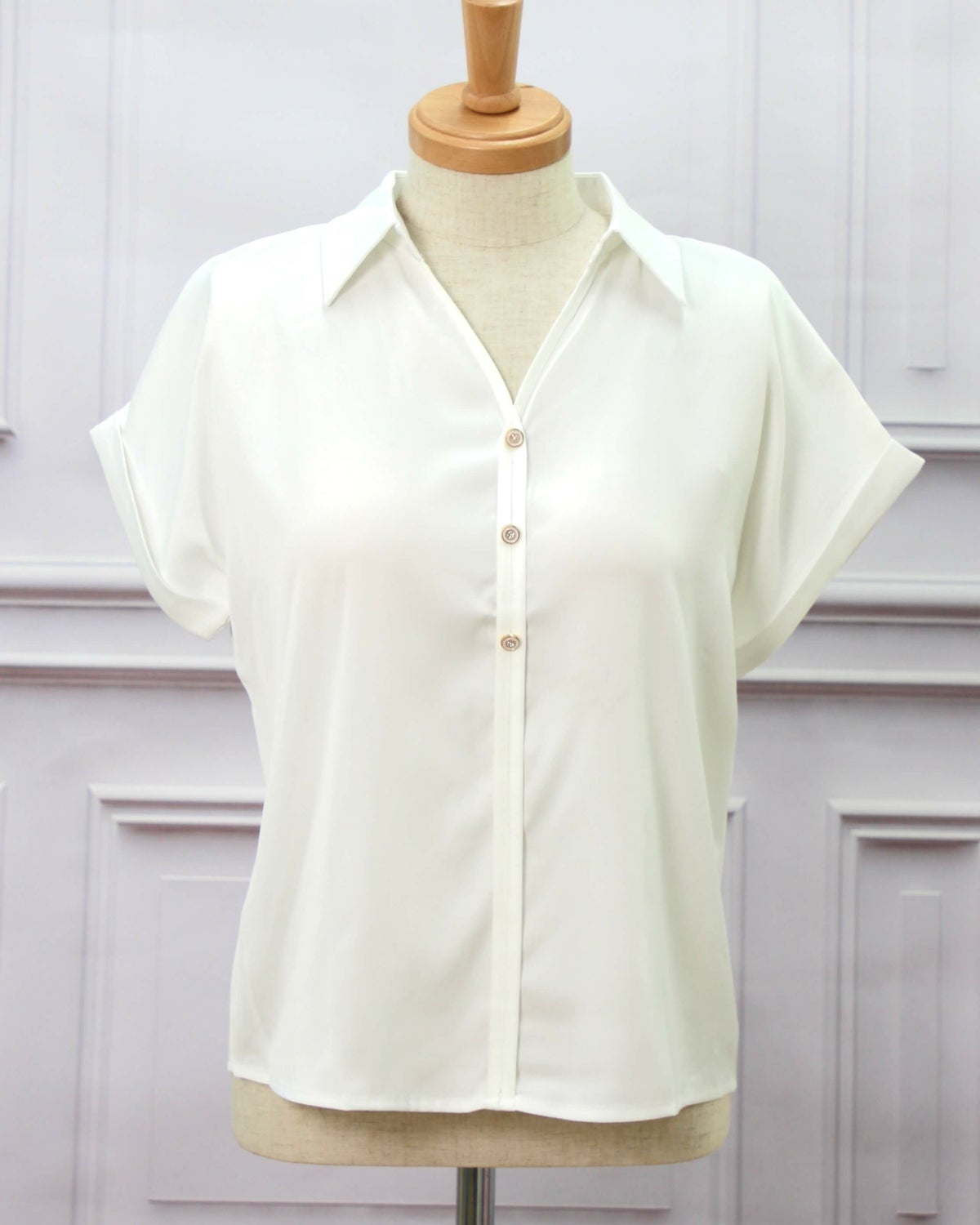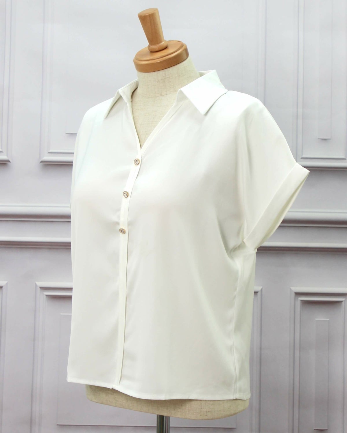 シンプル半袖シャツブラウス 白 フリーサイズ