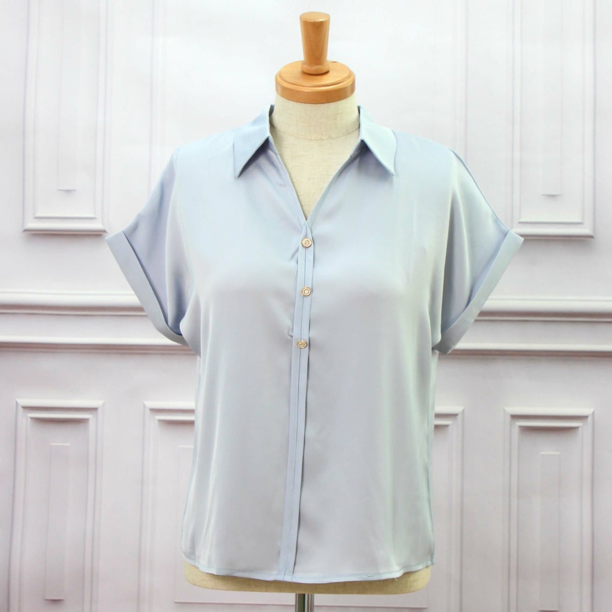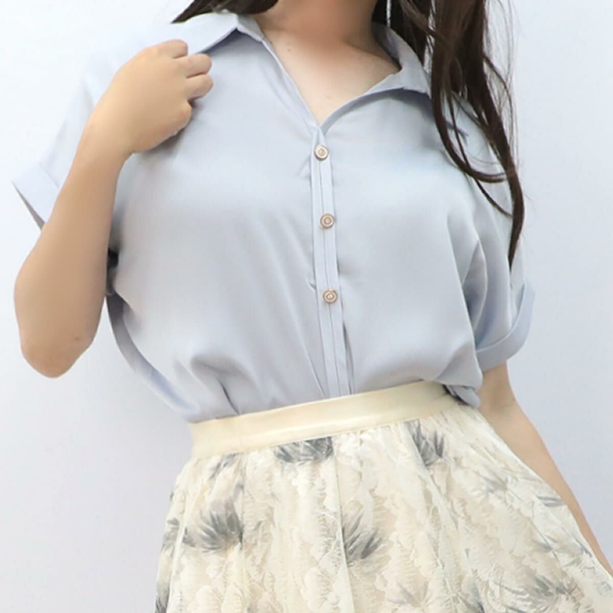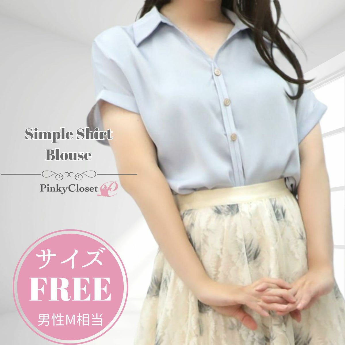シンプル半袖シャツブラウス 水色 フリーサイズ
