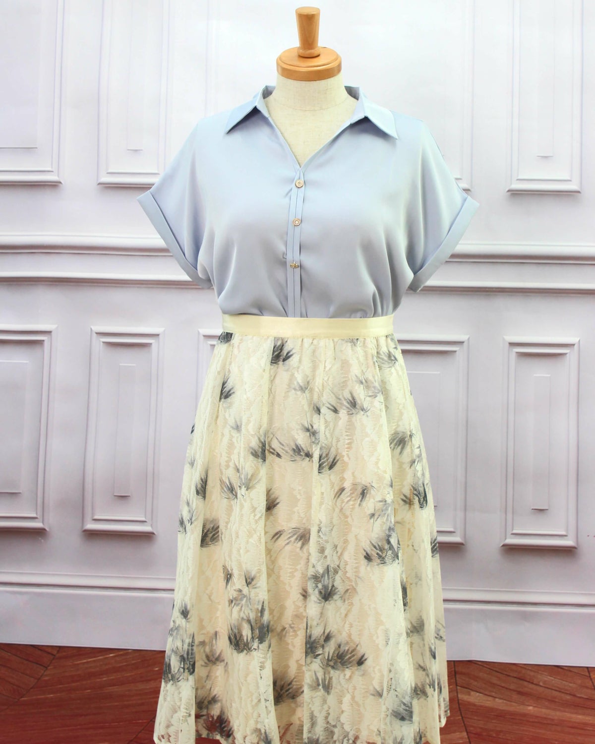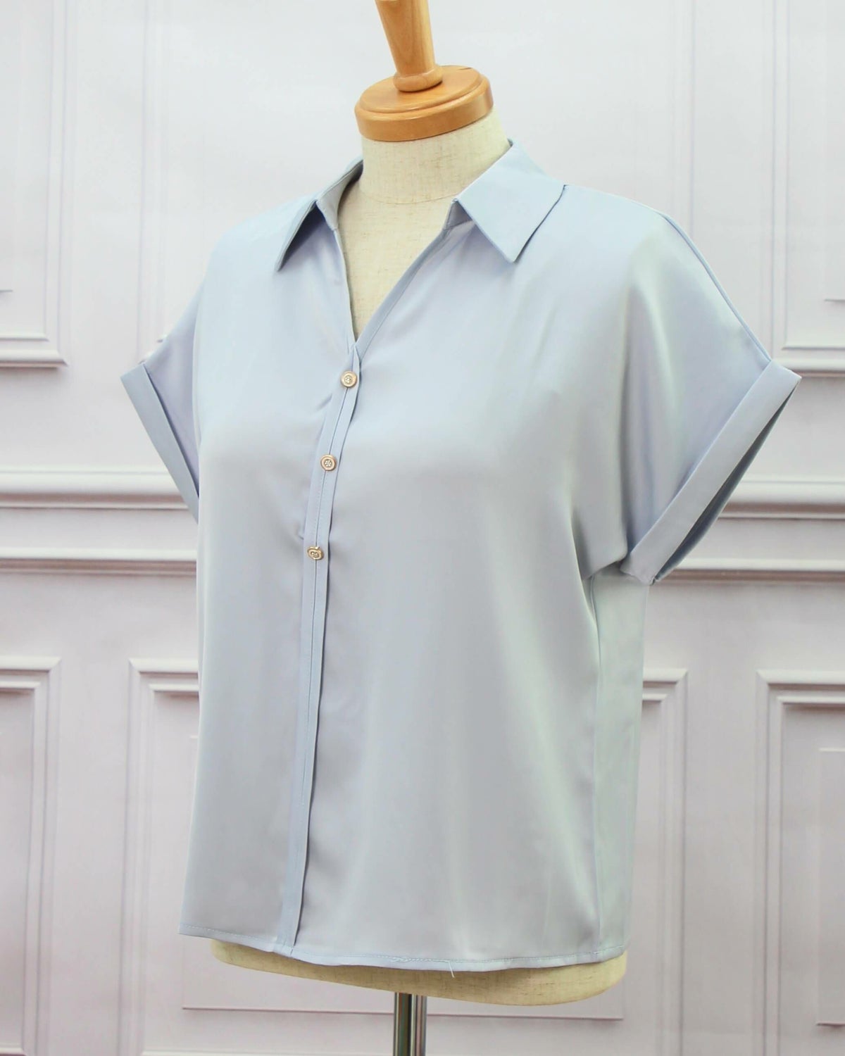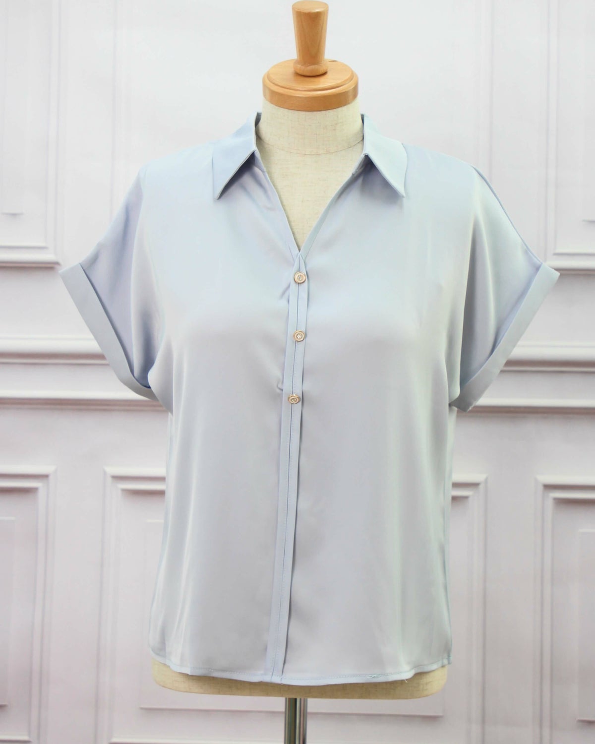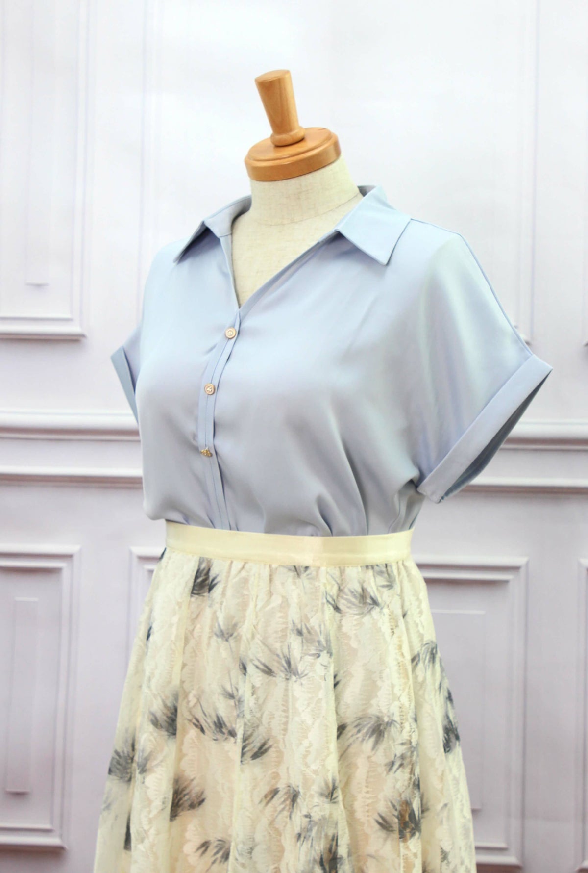 シンプル半袖シャツブラウス 水色 フリーサイズ