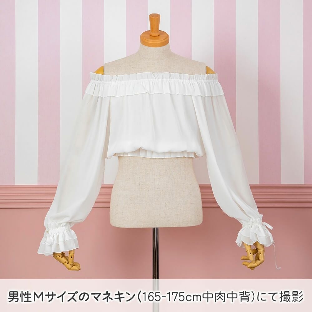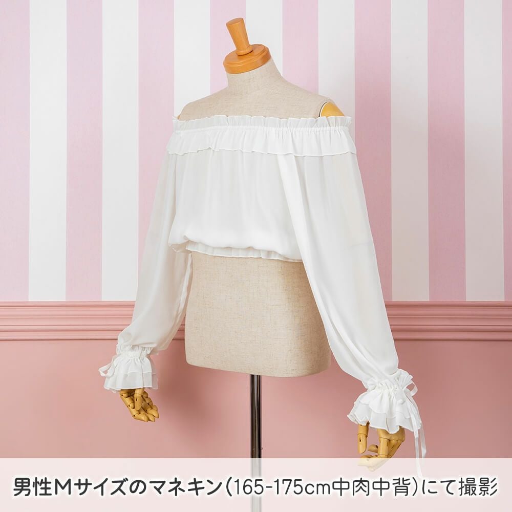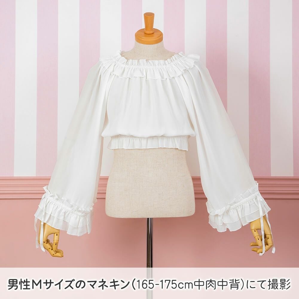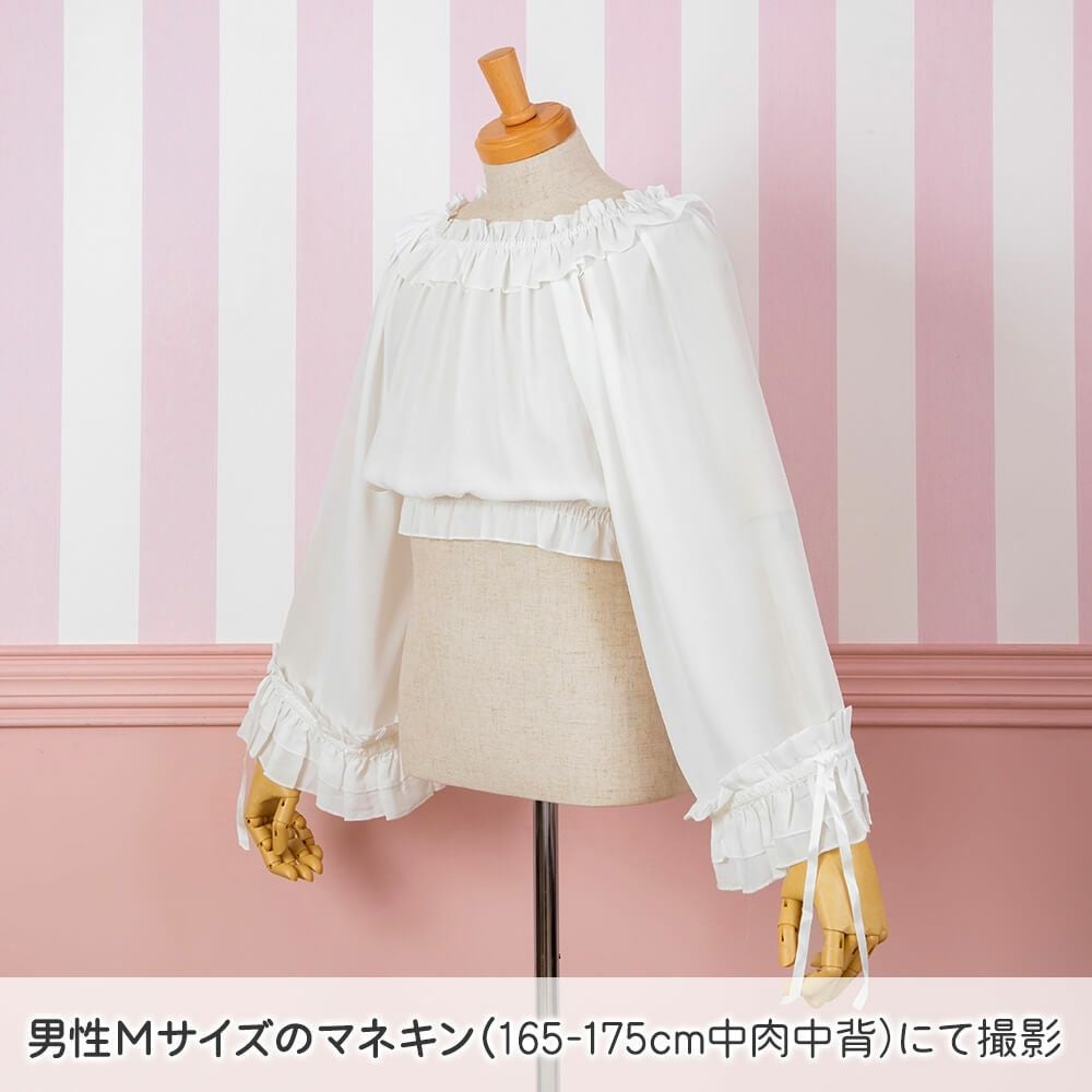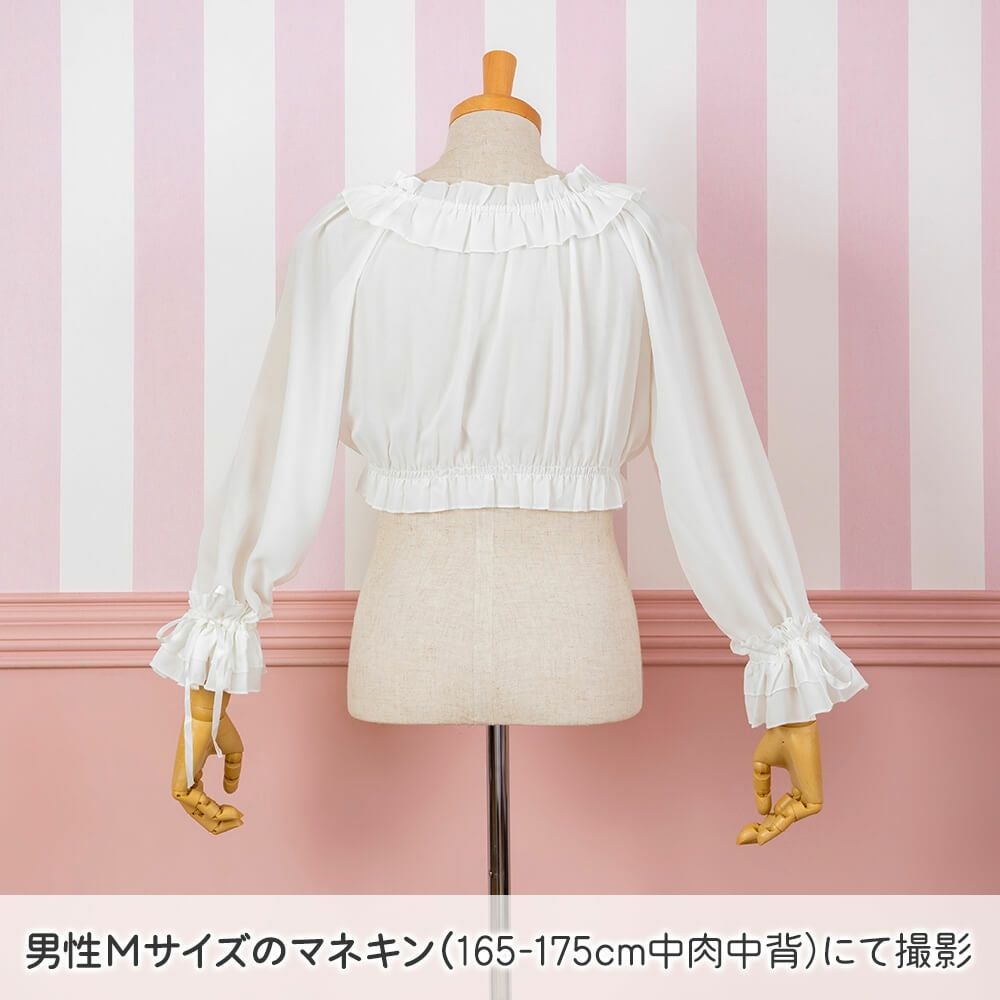 袖口2WAY長袖フリルシフォンブラウス 白