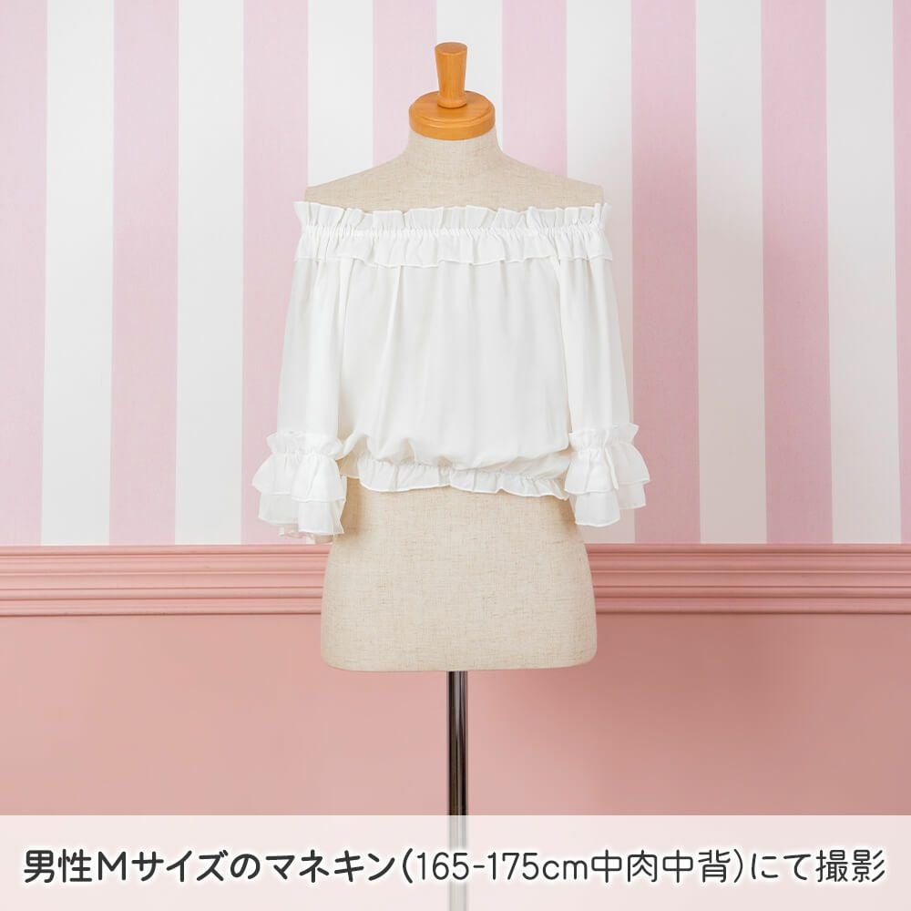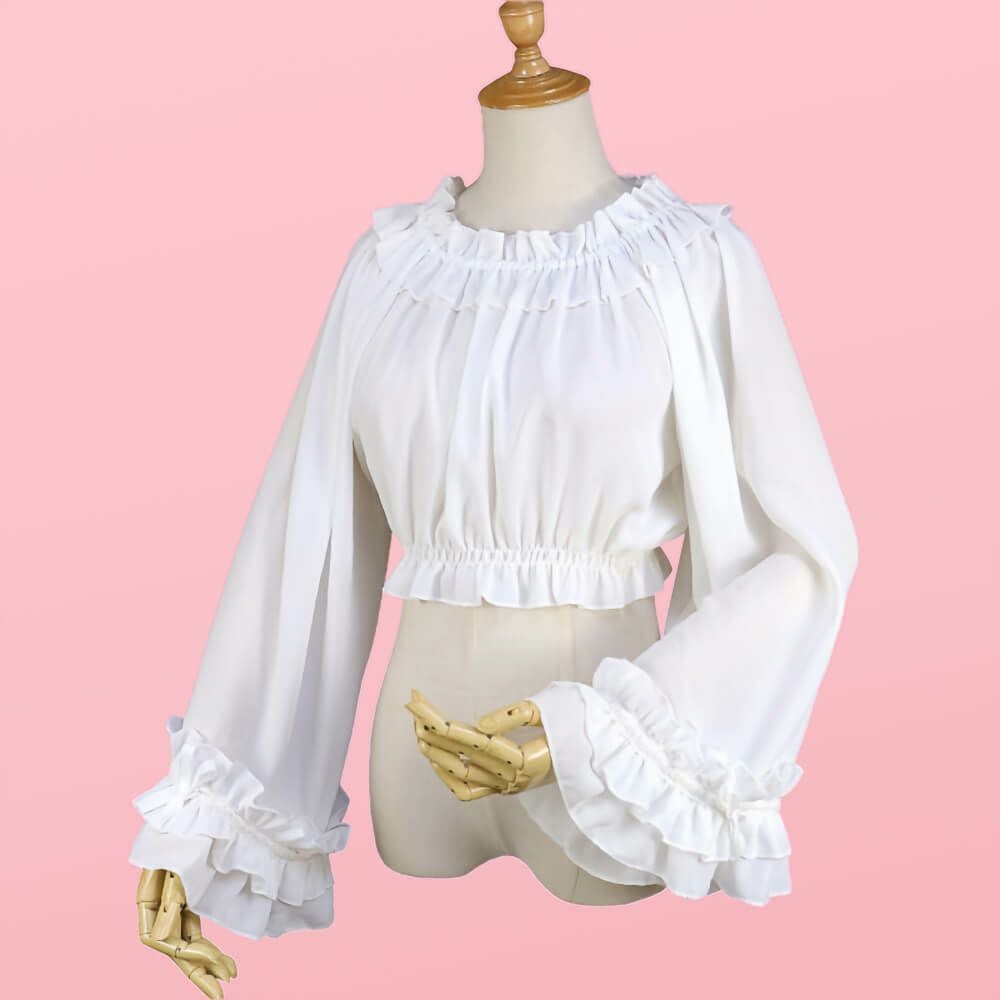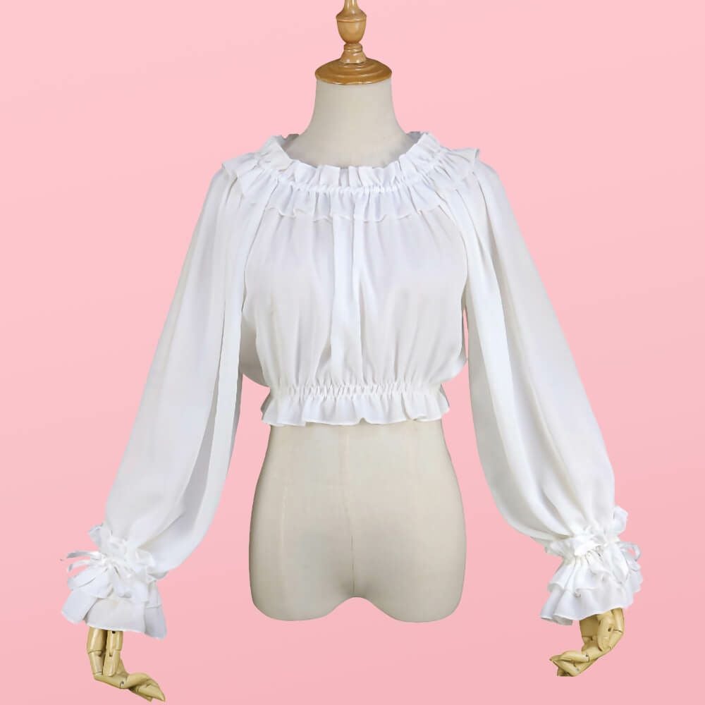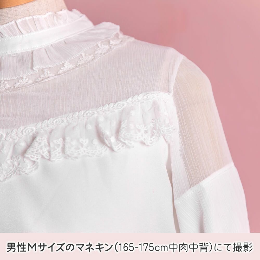 フリルレースジョーゼットブラウス 白
