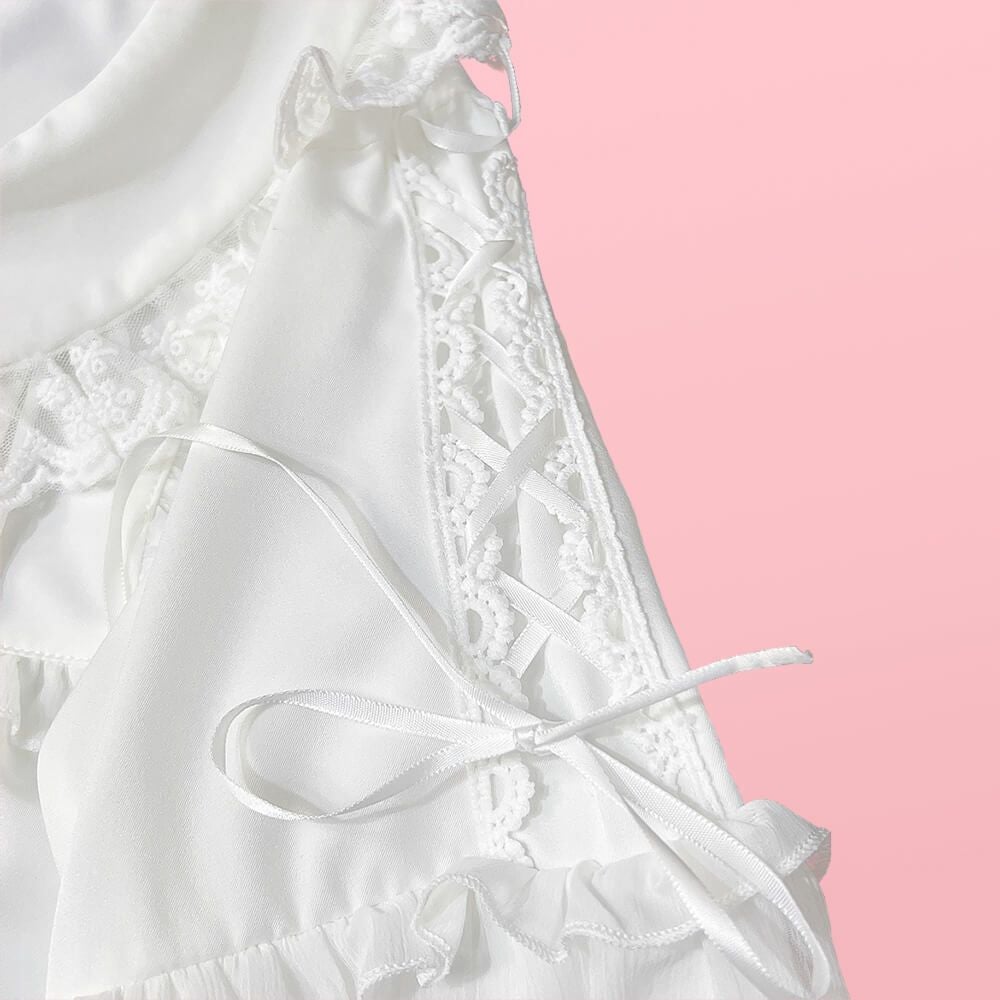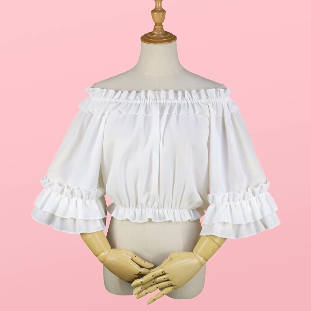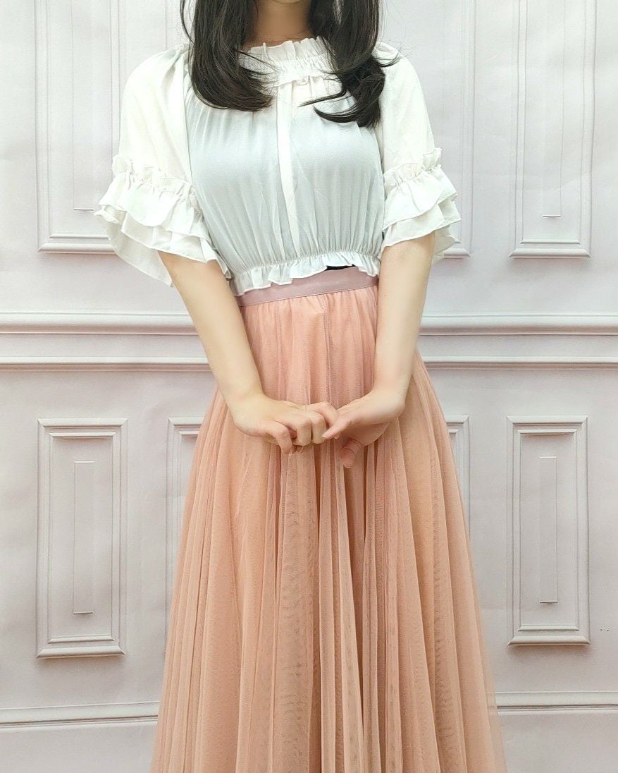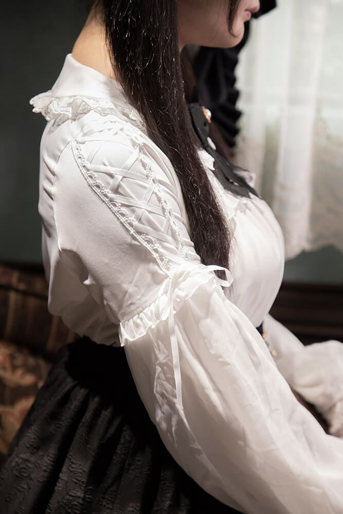 フリルレースジョーゼットブラウス 白