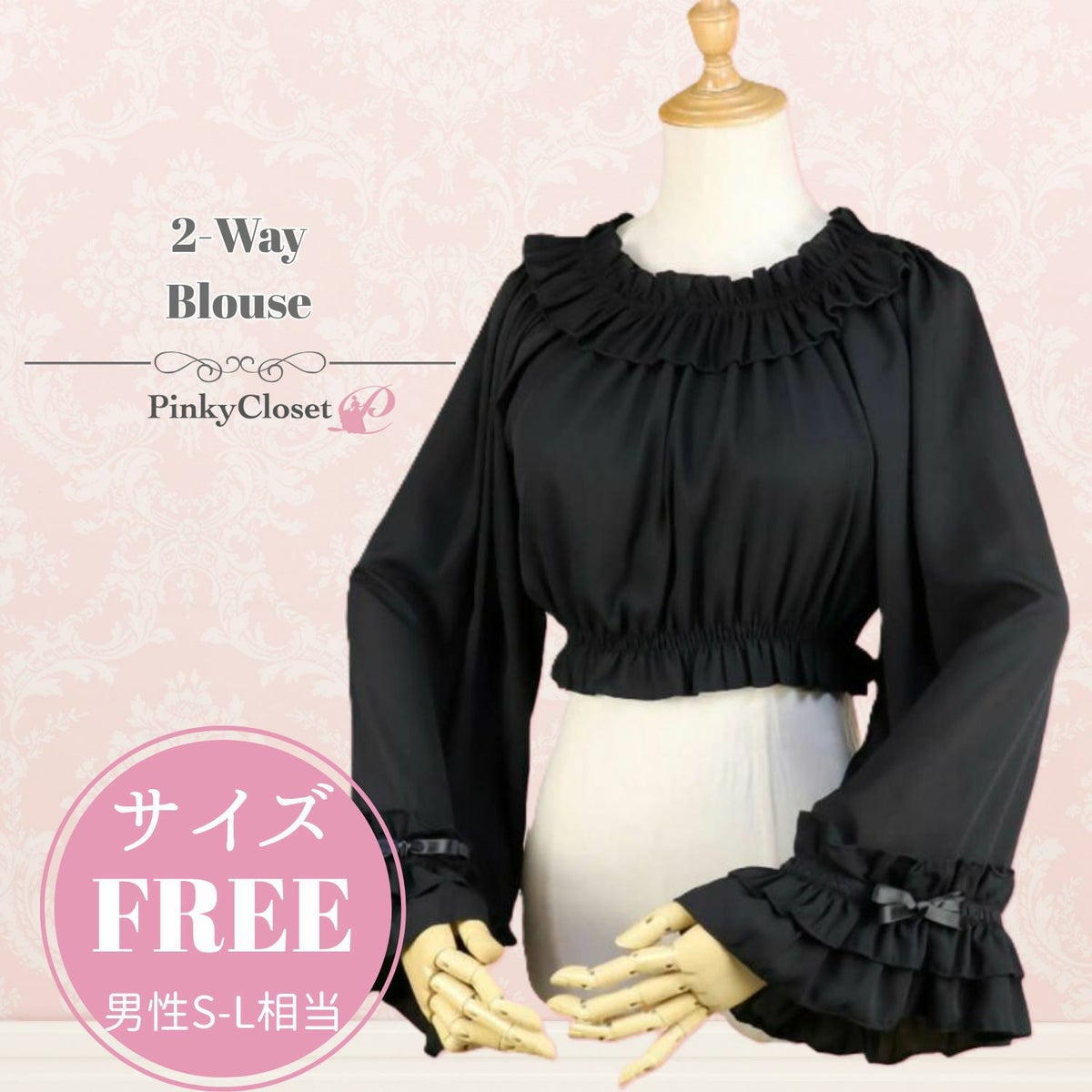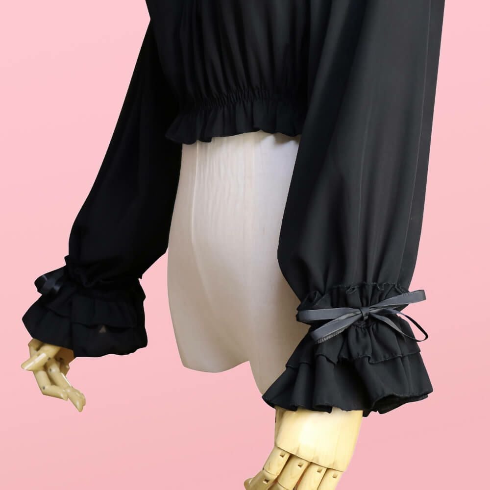 袖口2WAY長袖フリルシフォンブラウス 黒